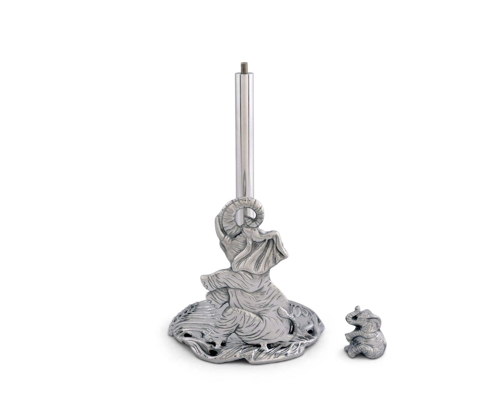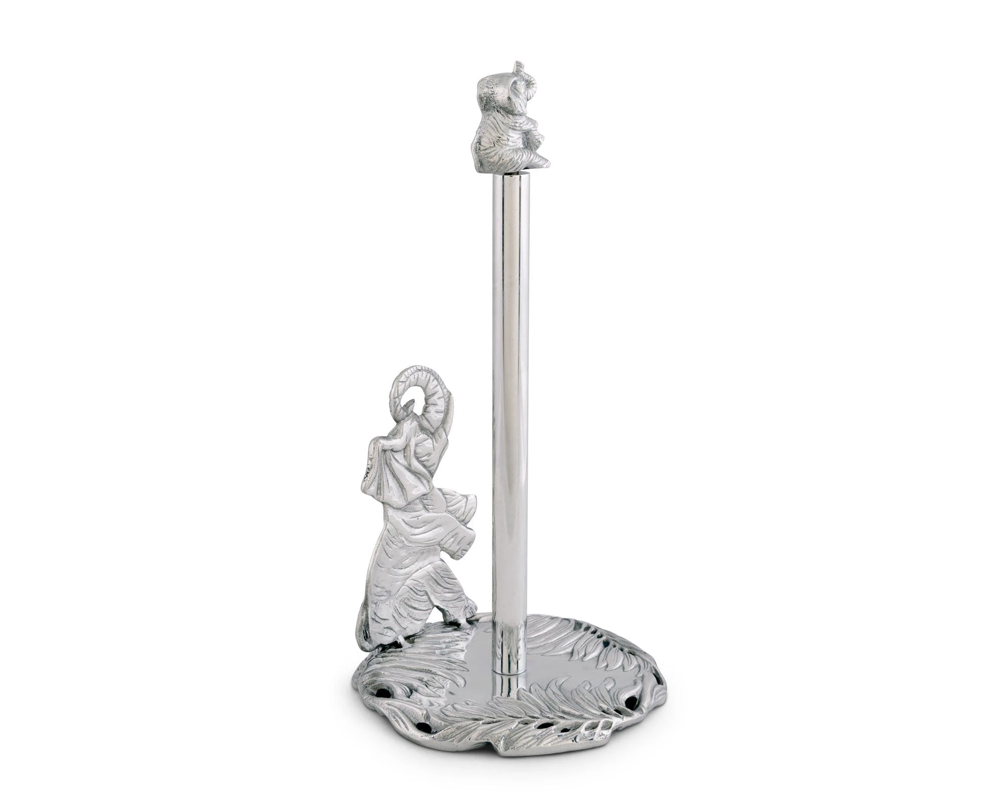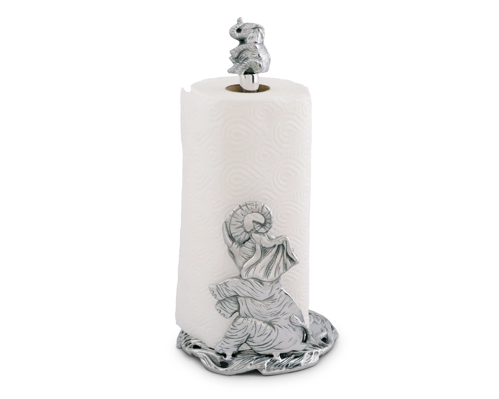 Turn cleaning into a family affair with the sweet pair in Arthur Court’s Elephant Paper Towel Holder. An elephant nuzzles up to the paper towels in this lovely piece, bringing its front legs up to reach for its baby that sits topside.The animals‘ rippled skin blends beautifully with the wavy-patterned base in this handmade, aluminum design.
