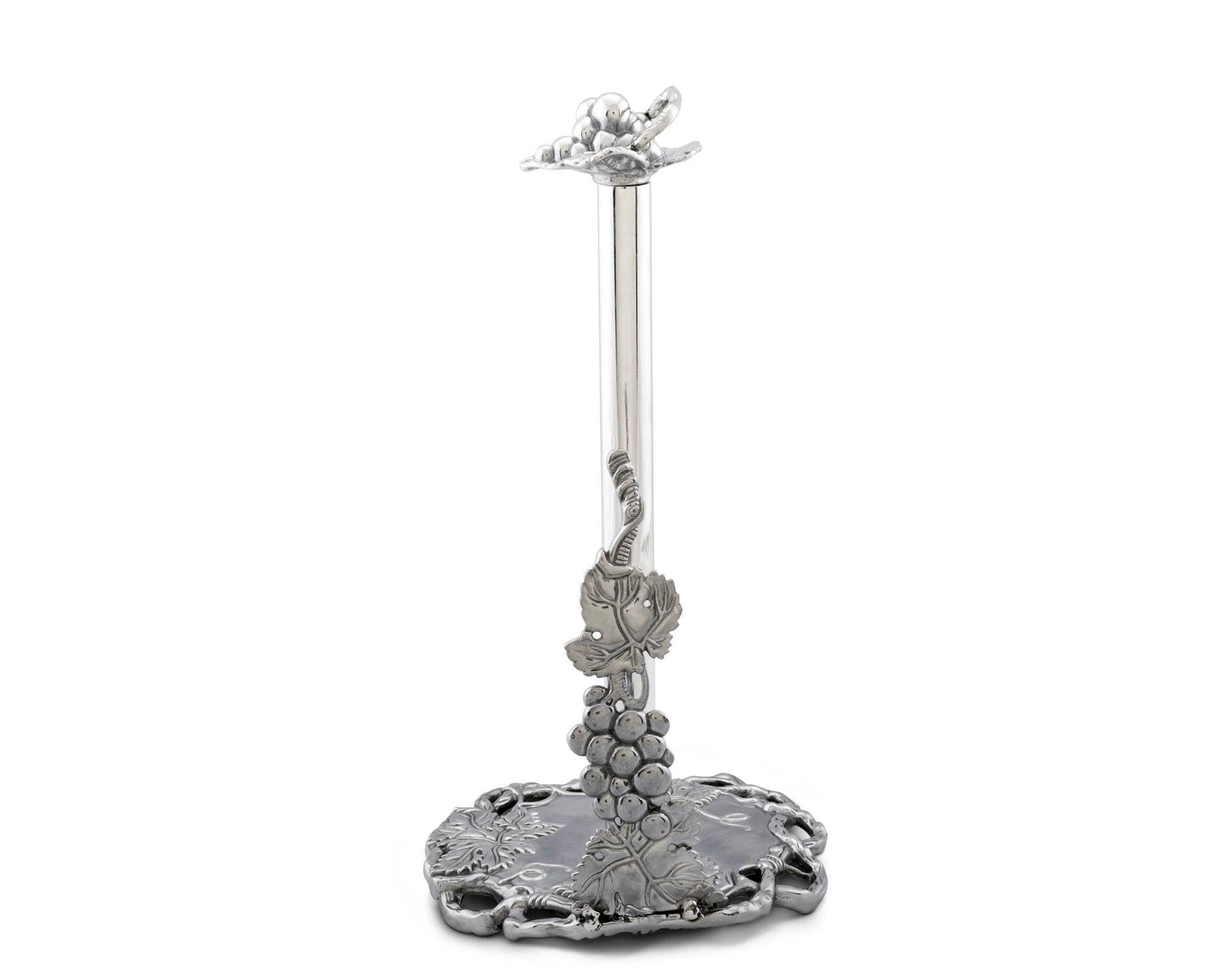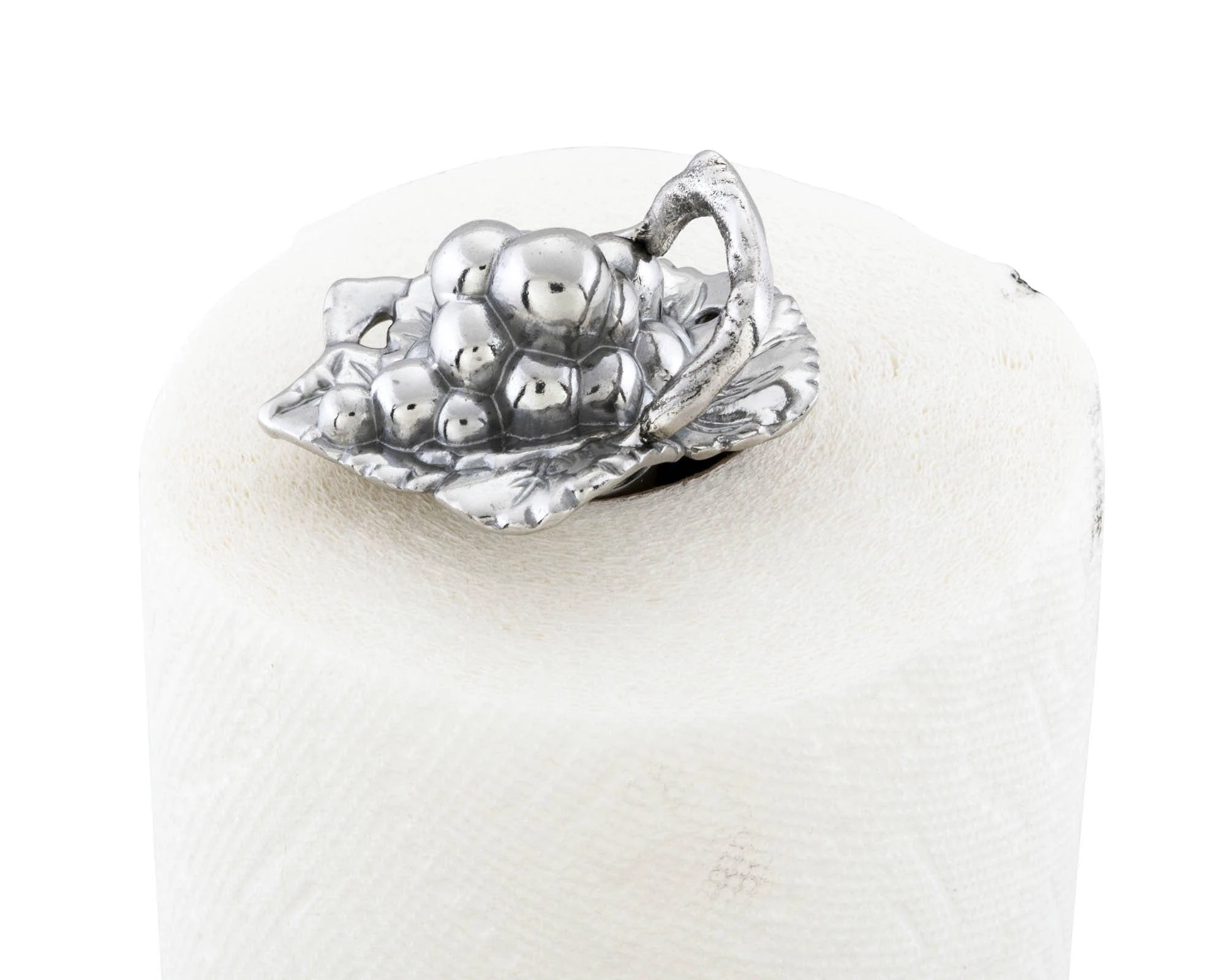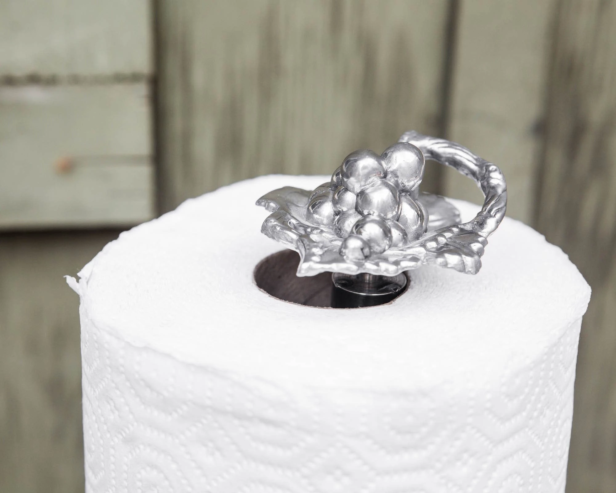 Extending up from the openwork base, a realistic bundle of grapes and leaves stack on top of each other as a curvy vine emerges from the top. Another intricate collection of fruit and foliage heads this handmade, aluminum design as a stylish accent.Complement your Grape Collection with this elegant Paper Towel Holder from Arthur Court.