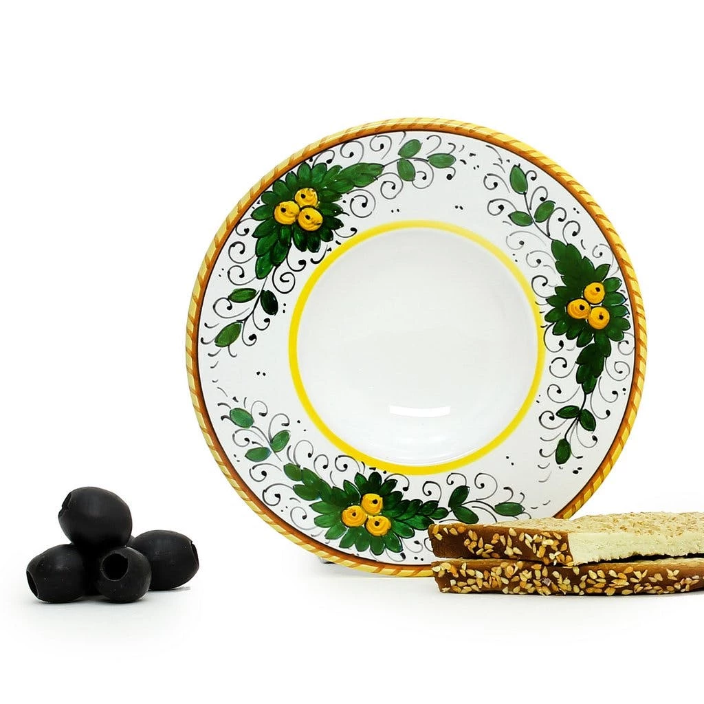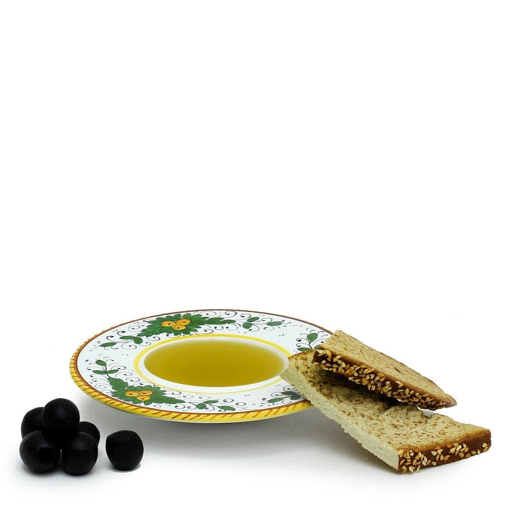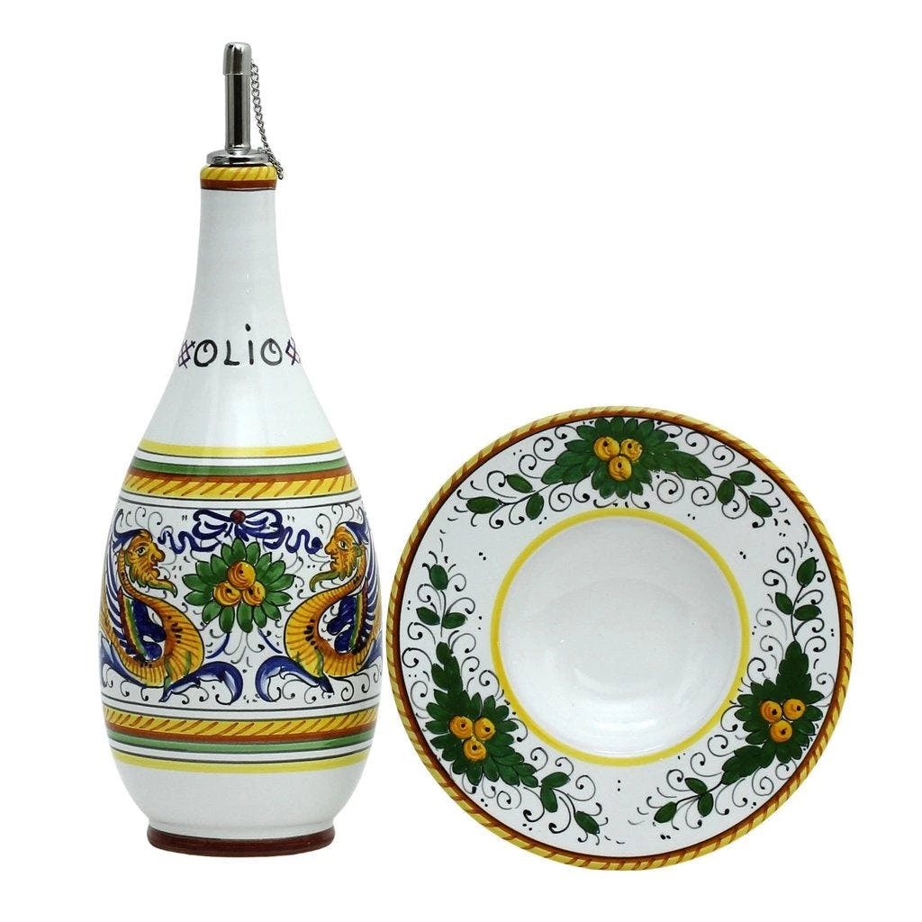 Among the most popular and enduring italian majolica patterns, the classic ‚raffaellesco‘ traces its origin to 16th century, and the graceful arabesques of raphael’s famous frescoes.The stylized dragon of the central motif was reputedly painted first by raphael, a master painter and architect of the italian high renaissance.Raffaellesco is a benevolent deity who bestows good luck and fair winds to seagoing merchants, thus the puffs of wind steaming from the dragon’s mouth.