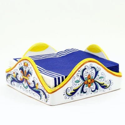 Ricco deruta: artistica’s ricco deruta is the true original version of the most celebrated deruta’s design, which traces its origins to the sixteenth century.Masterfully hand painted with the original royal blue, yellow gold, and emerald green; traditional renaissance era colors to bring royal elegance to your table.