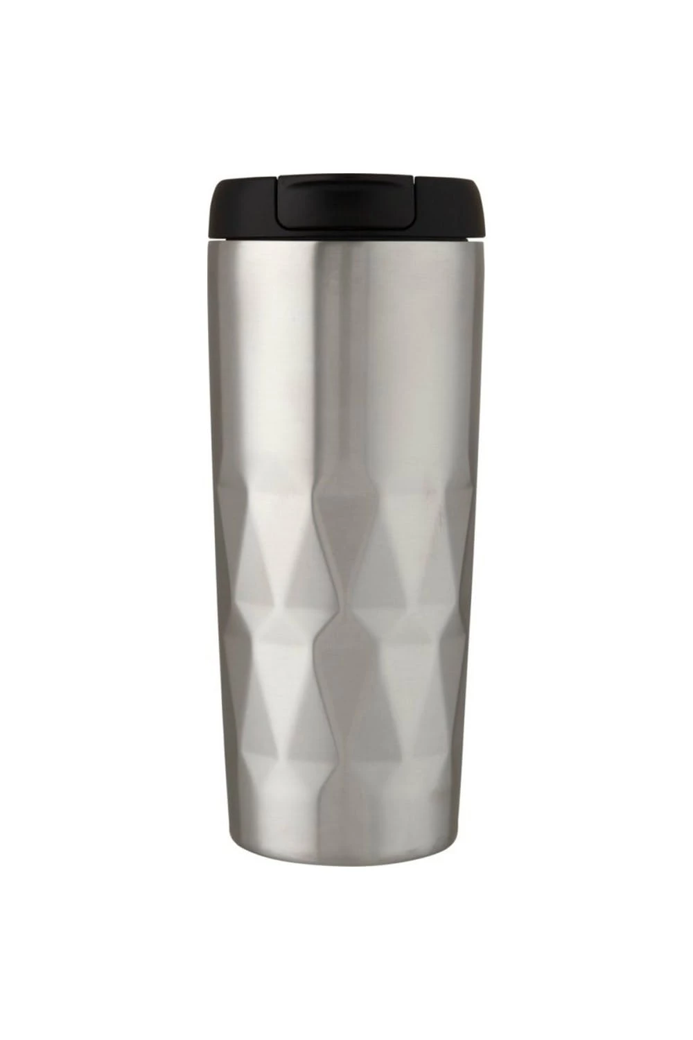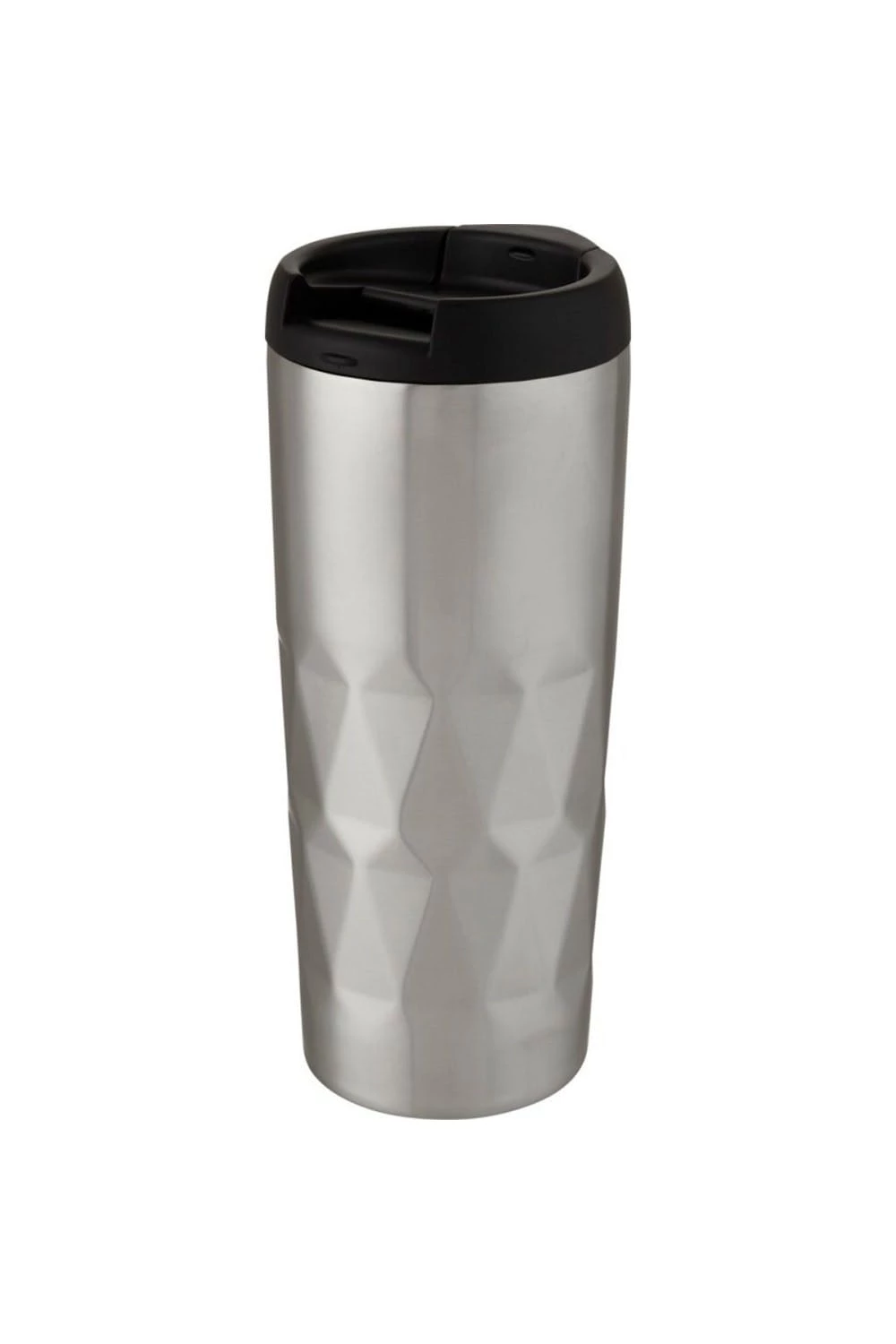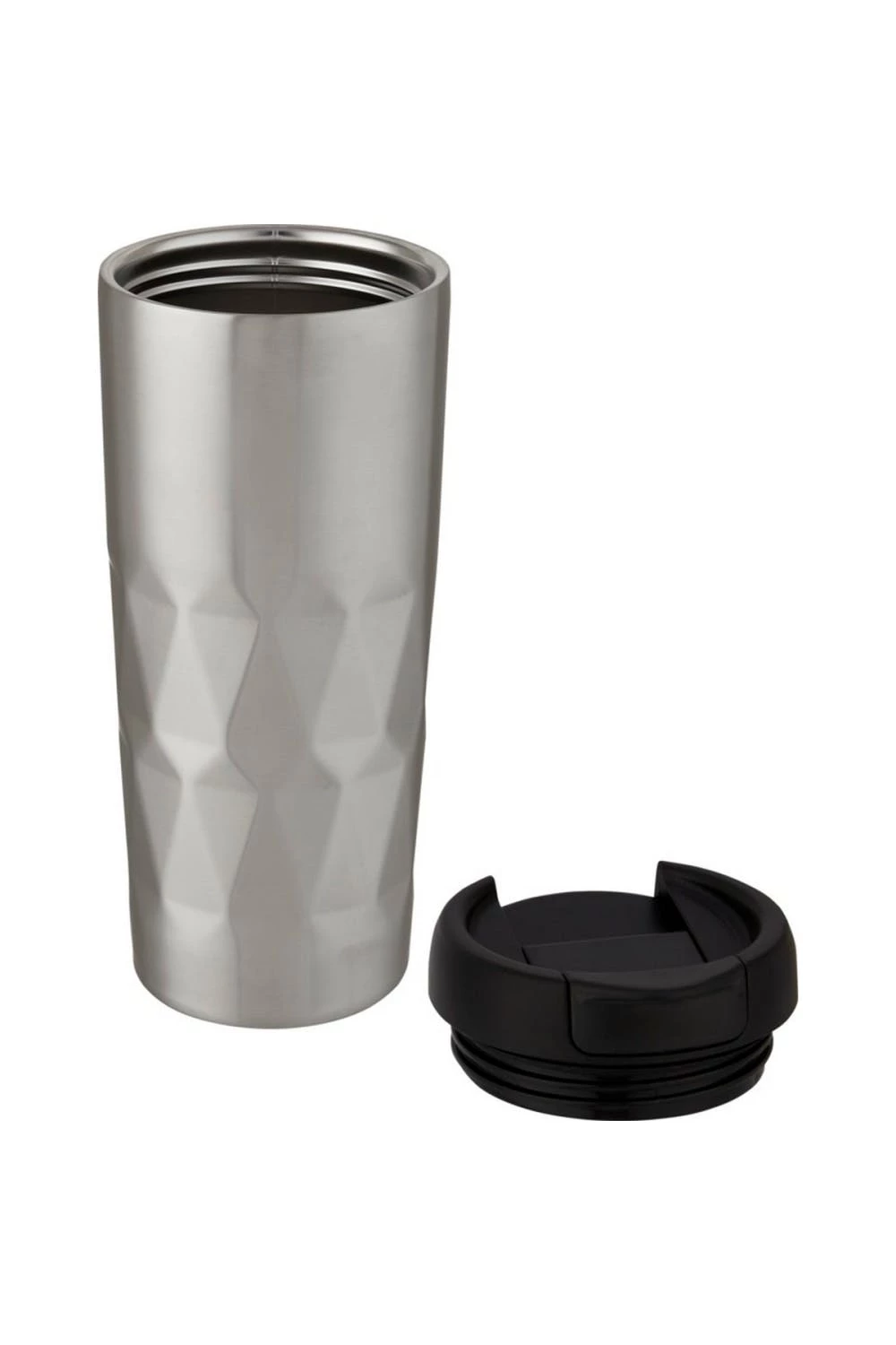 Double-walled copper vacuum insulated tumbler with screw-on leakproof lid featuring an intricate geometric design. The insulated 18/8 stainless steel keeps drinks hot or cold for several hours. Bpa-free and tested and approved under german food safe legislation (LFGB) and tested for phthalates content according to reach regulations.
