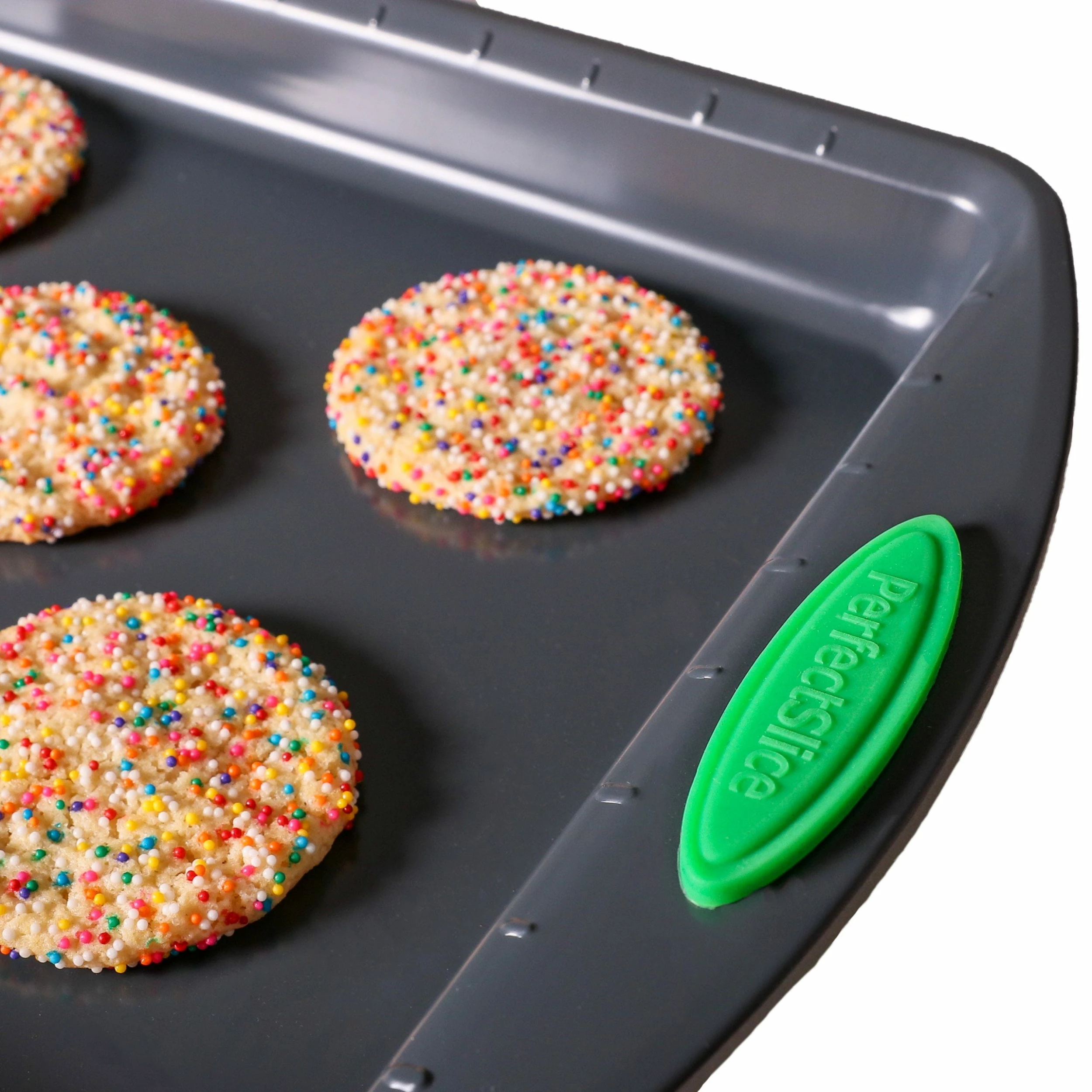 PerfectSlice Bakeware is All-in-One Non-Stick Bakeware and Patented Slicing System. It is more than quality baking pans. It’s also a convenient slicing system. The unique patented guidelines grid around the outer edges of every pan allows you to simply line up an exclusive PerfectSlice Slicer and press down to create any portion size desired. Every slice is beautifully uniform. Made with strong carbon steel that won’t warp or bend, with BergHOFF’s FernoGreen non-stick, non-toxic, lead-free, cadmium-free and PFOA-Free coating.
