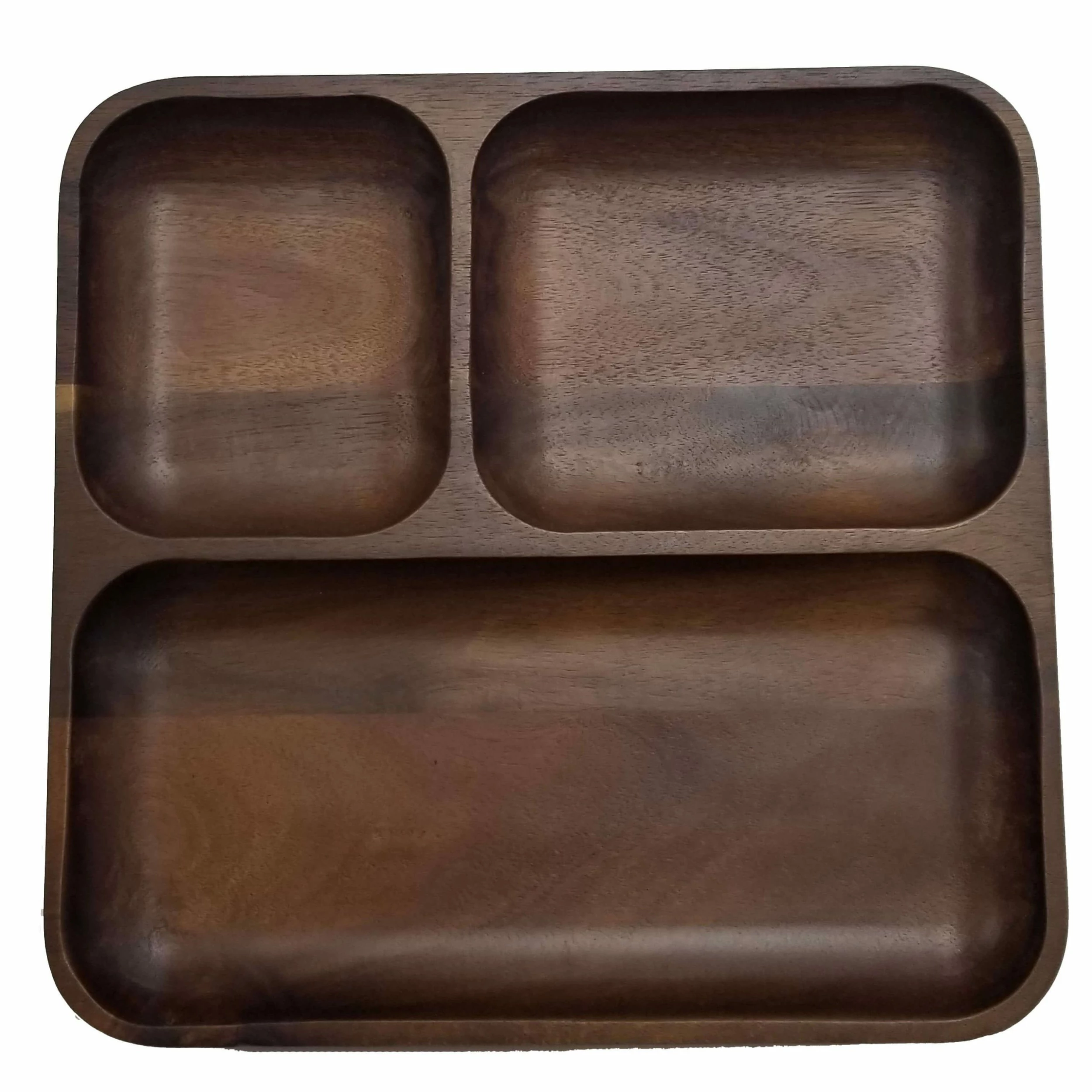 Perfect for outdoor parties, these beautiful acacia wood trays will make a statement at any party. The 3 compartments will keep your food separated. Perfect for use a serving tray or an appetizer tray.