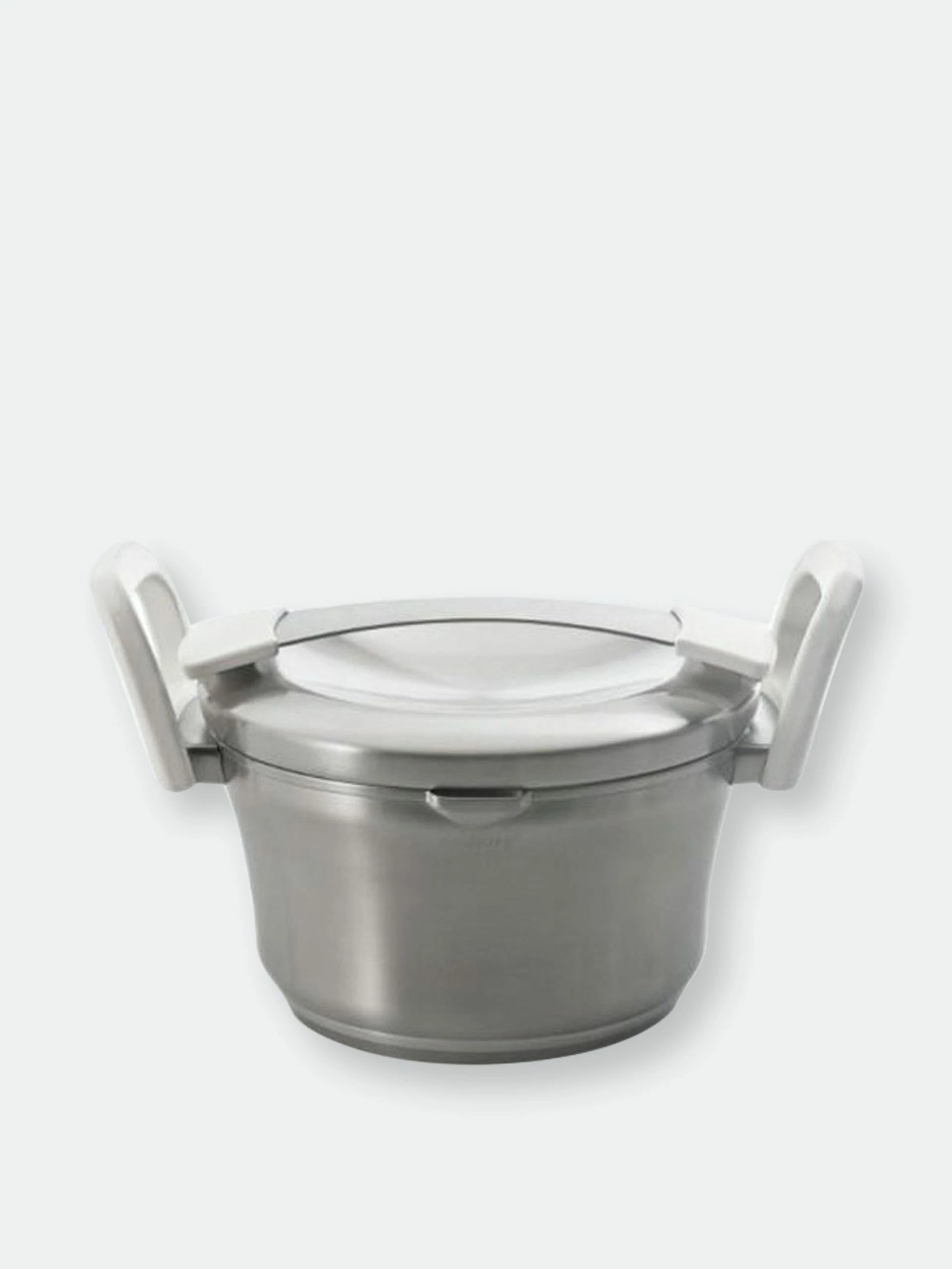 The 1.9qt patented 6-layer base covered casserole pot transfers heat quickly and spreads evenly throughout the complete surface of the base. 18/10 stainless steel body with white stay cool handles. Practical scaling inside. Convenient pouring rim and the design of the handles on body and lid offer hassle-free pouring of liquids. Suitable for all heat sources, induction included.