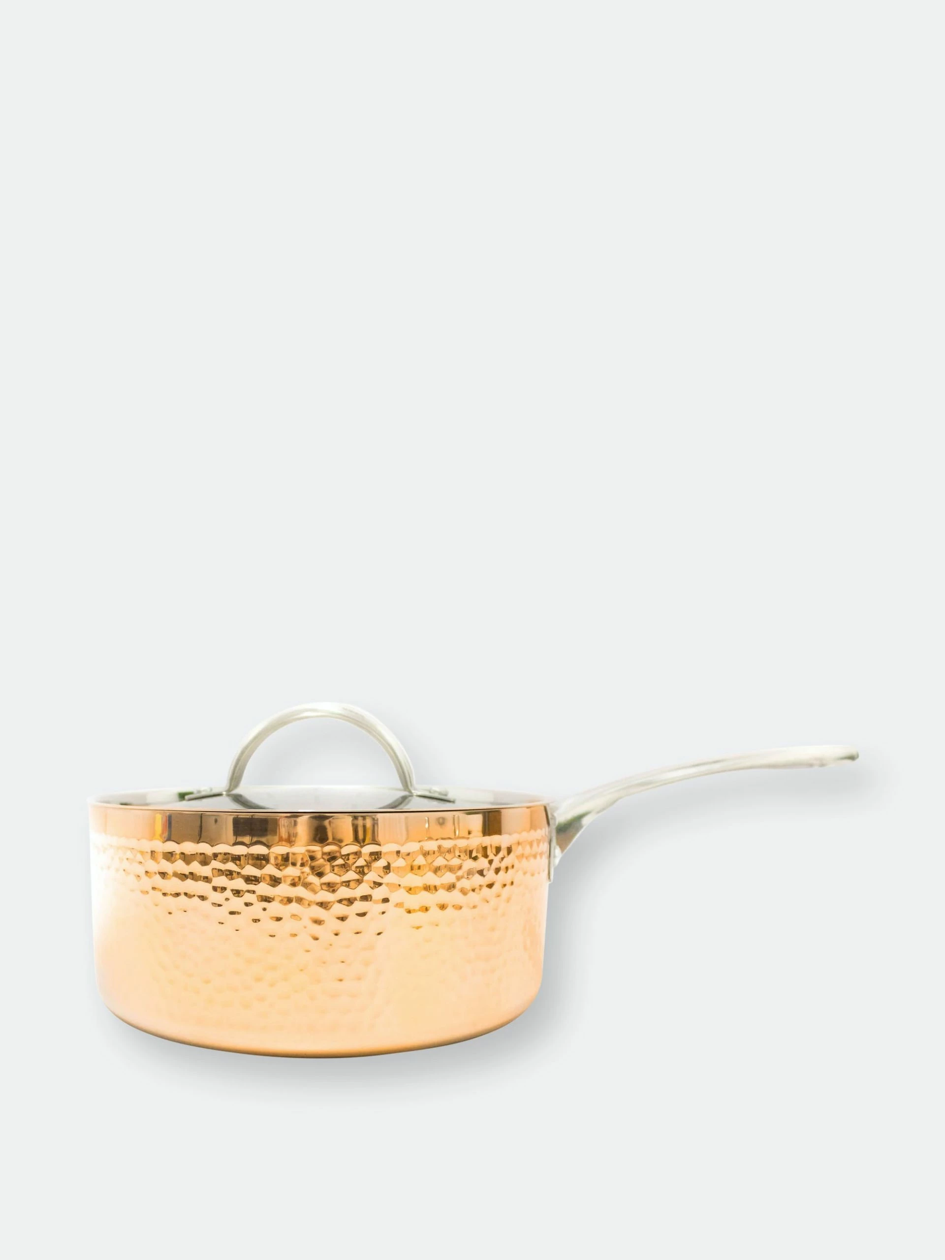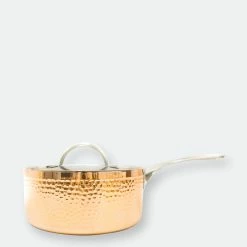 Any copper cookware set needs this hammered copper saucepan with perforated lid. With one of the largest diameters in cooking space at eighteen centimeters, this distinguished 2 qt. saucepan is a must to your collection.