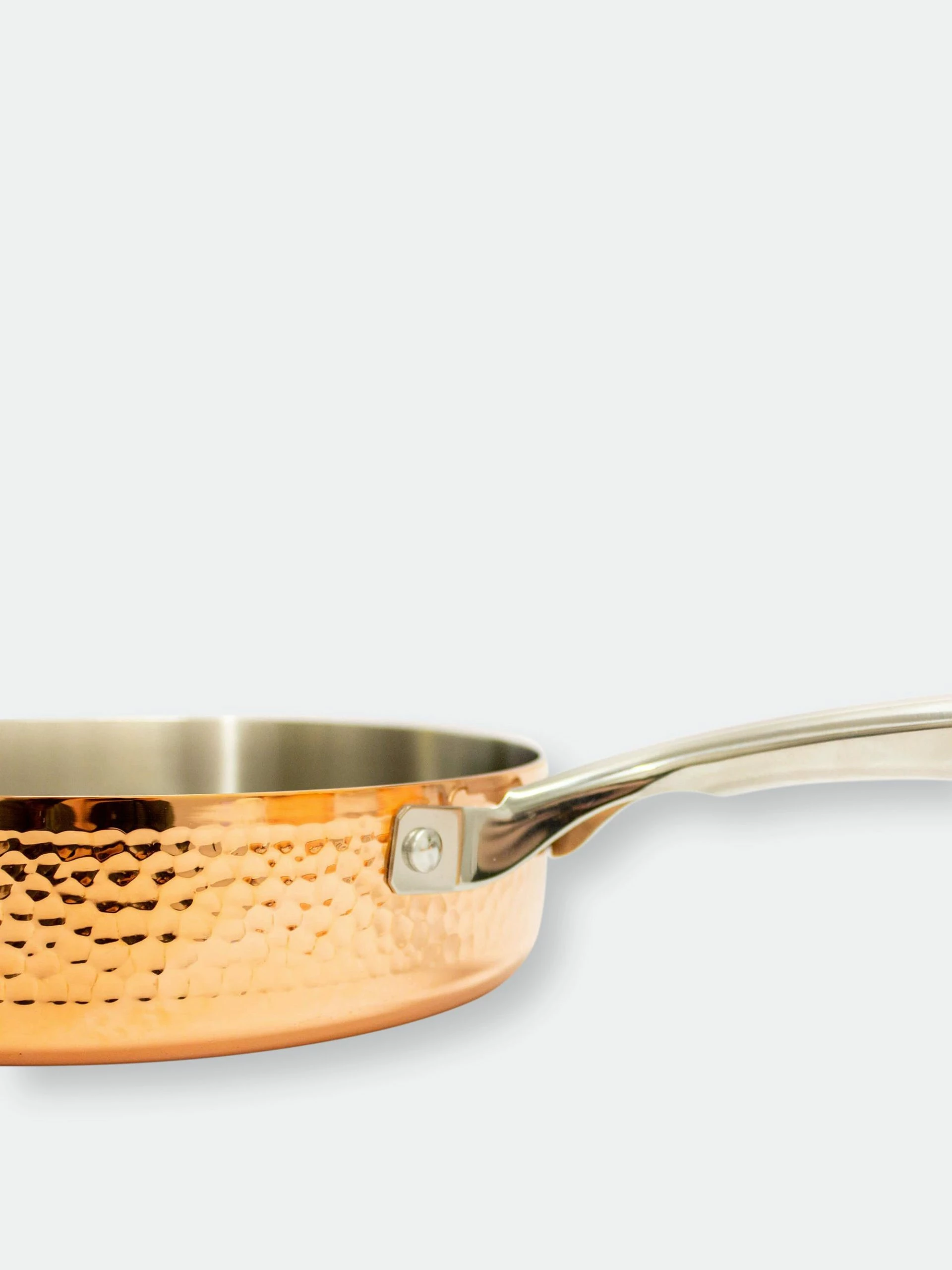 - Materials: Tri-Ply Copper + Aluminum Core + 18/10 Stainless Steel cooking surface