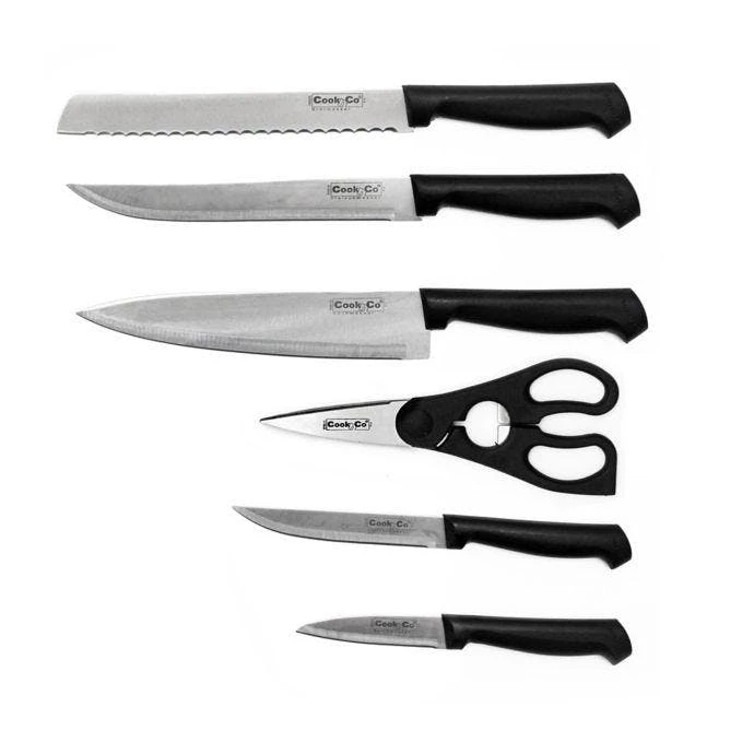 The Ergonomic 7 Pieces Knife Block is a classic way to spice up you kitchen while increasing the ease of your cooking. The cutlery set’s black handles provide a stark contrast to the natural wooden block.
