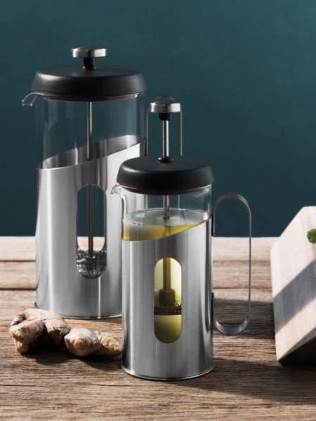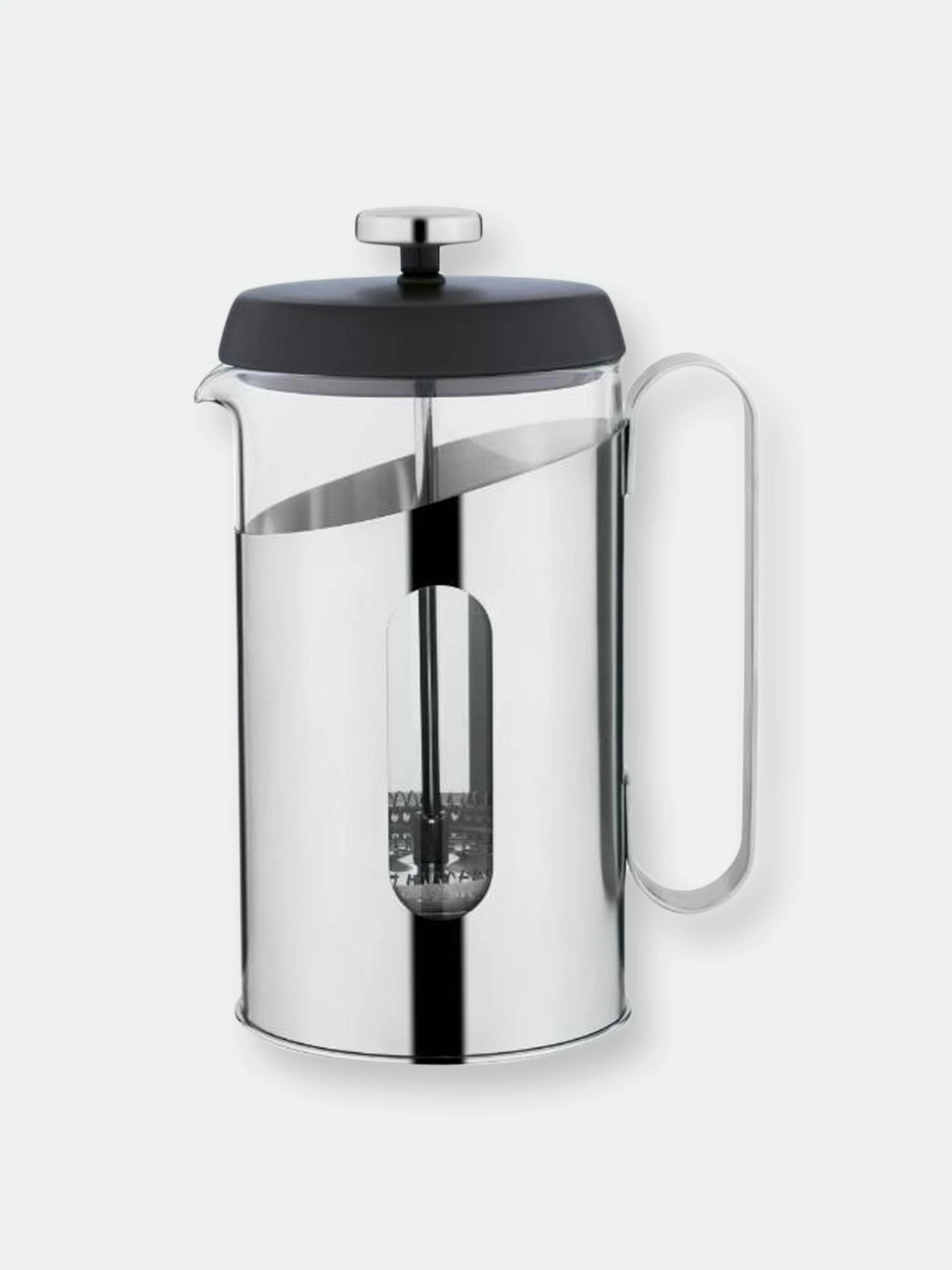 The BergHOFF French press is a cylindrical pot with a plunger and a built-in filter screen that presses hot water onto tea leaves or ground coffee. When you choose the French press to create a delicious cup of coffee or tea, you’re sure you’re using a reliable and consistent method that’s ideal for making several cups in just a few minutes. Makes 0.85 quarts. Constructed of stainless steel with a glass carafe and is dishwasher safe. This French press is the perfect addition to any kitchen!