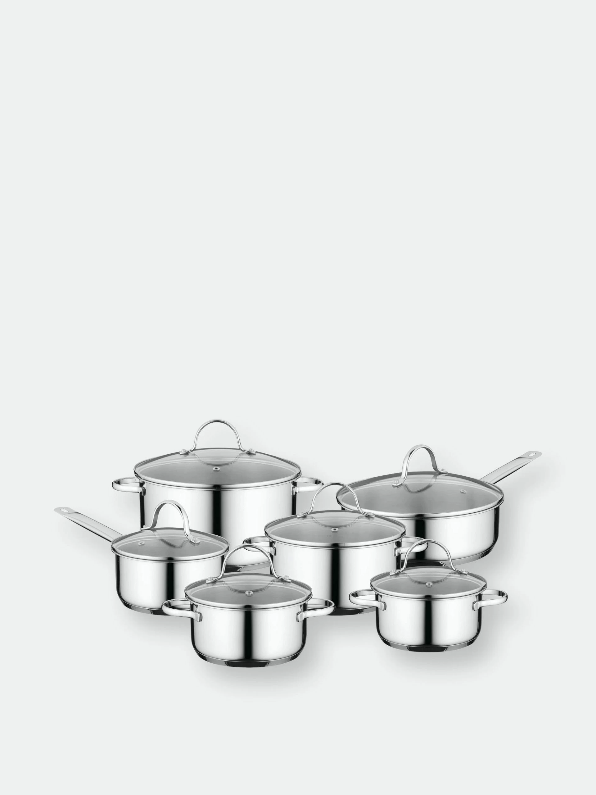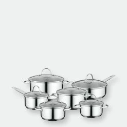 Durable, stylish and user-friendly, this collection of stainless steel cookware has it all. The pots and pans are suitable for all stovetops, including induction, and feature a 3-layer base that ensures an event heat transfer throughout the entire surface for energy-efficient cooking. All pieces are made from high-quality 18/10 stainless steel with an elegant satin finish to give that extra stylish touch to your stovetop and are dishwasher safe so the clean-up is a piece of cake. The pots come with a clear glass lid that allows you to monitor the contents without having the lift the lid and have a special rim for easy, drop-free pouring. Add to this the different sized frying pans, some of them which have a multi layer non-stick coating that guarantees an easy food release, and you’ve got an all-round cookware set that will stand the test of time!