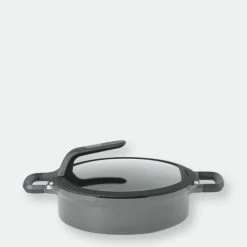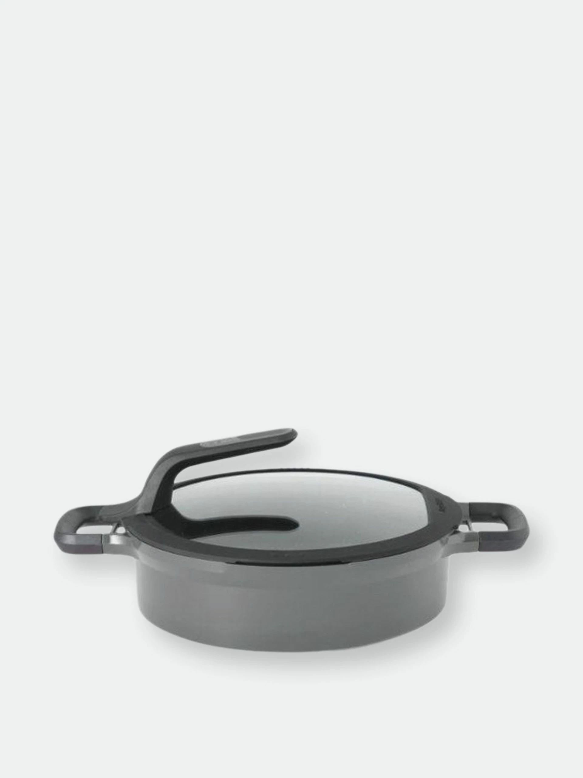 A delicious risotto, sautéed vegetables or a sauce that’s reduced to perfection, whatever you fancy for your next meal, this covered sauté pan is the perfect tool to help you prepare it. The pan’s lightweight aluminum body is suitable for any kind of stovetop, including induction, and has a high-quality non-stick coating so you can cook with little to no oil without having to worry about food sticking to the pan. An added bonus are the stay-cool handles that ensure a safe and comfortable grip and the clear glass lid that features two different sized pouring areas so you can use the pouring rims to strain various ingredients without even lifting the lid. Want to stir or serve your food? Just place the lid vertically on the body of the pan and you’ve got your hands free to do your thing. Suitable for all cooktops including induction. Inside dimensions: 11x11x3 / Outside dimensions: 16.25×11.5×5.5