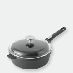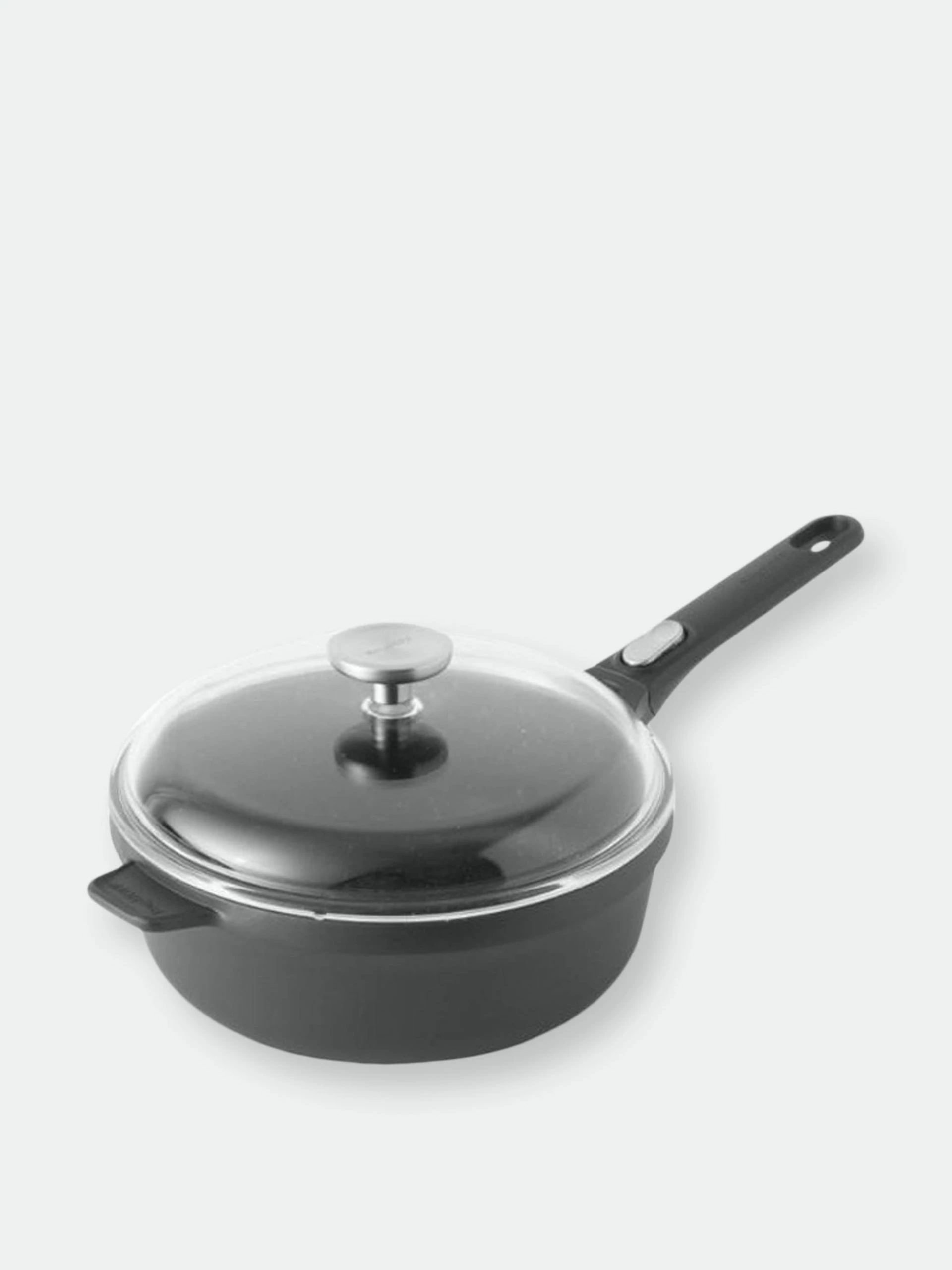 Give your sauces a chance to shine with this non-stick sauté pan. The aluminum reacts quickly to temperature changes, from the heat you need to sauté your meat or poultry to the gentle simmer for your pan sauce. Use it on any hob, put it in the oven or take it directly to the table with the easily detachable handle. The matching glass lid with stainless steel knob lets you look at your cooking without reducing the heat in the pan.