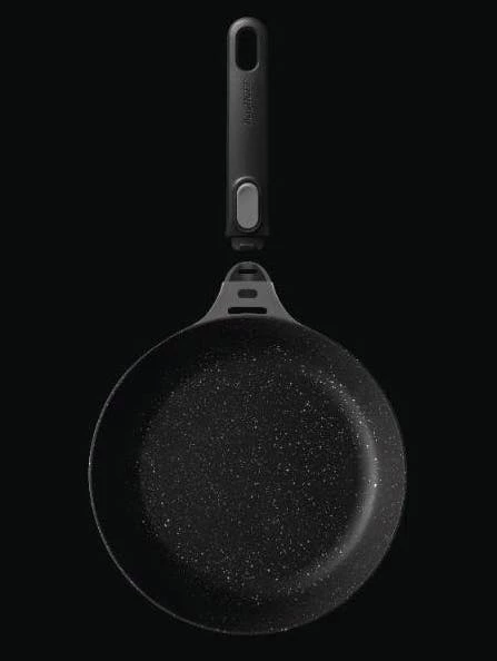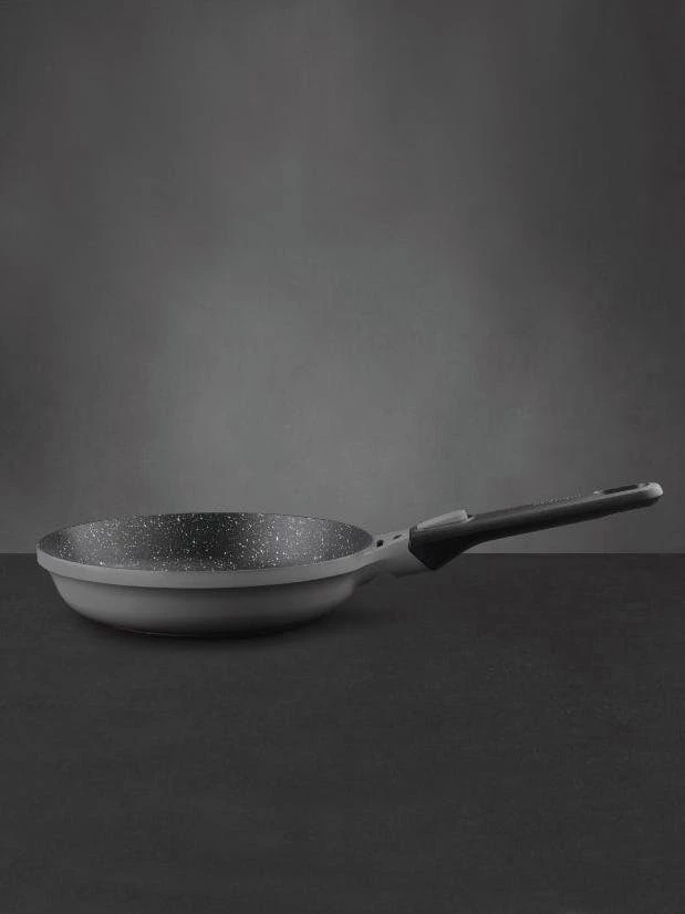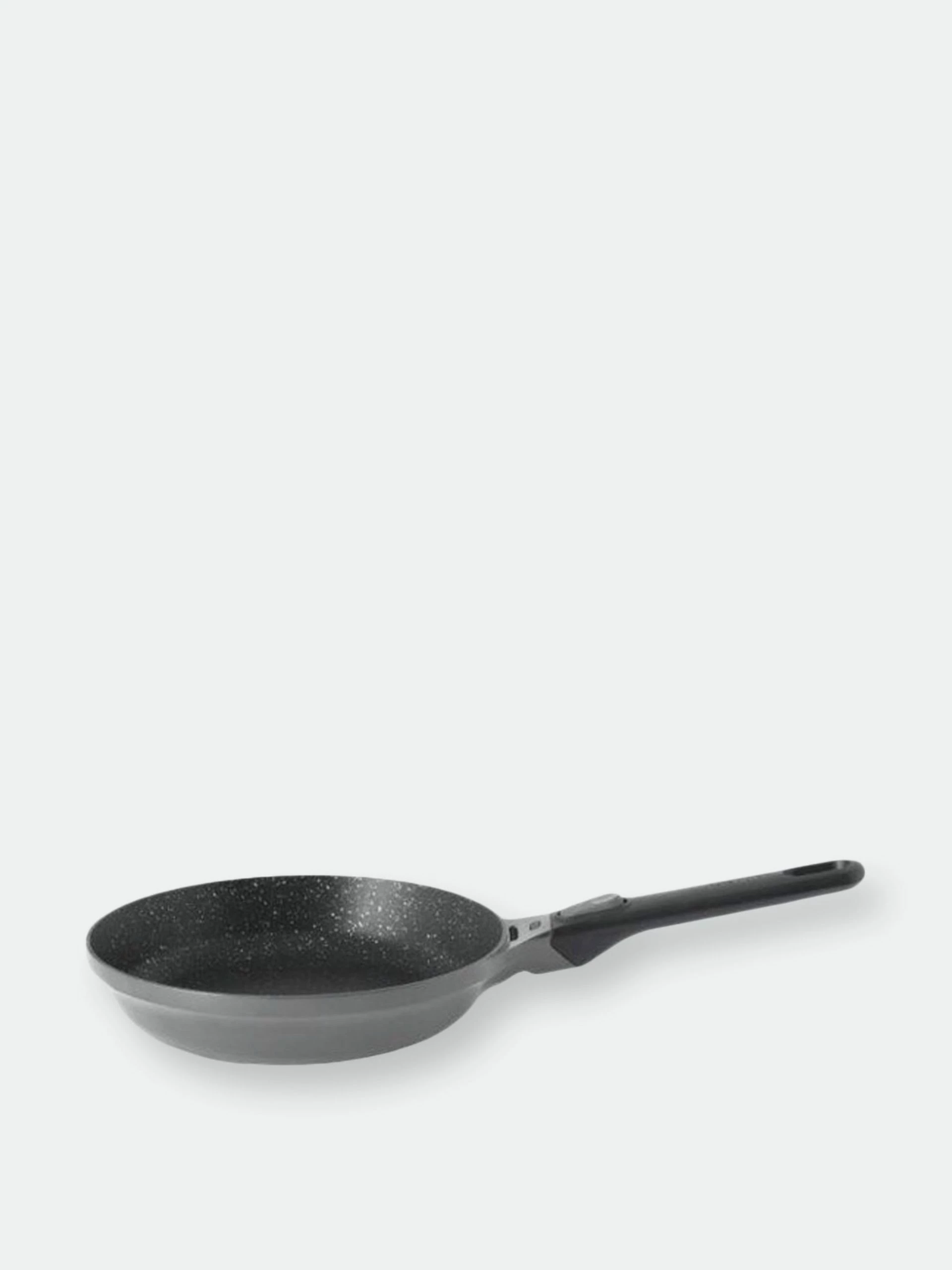 Whether it’s bacon and eggs in the morning or a good size piece of meat or fish in the evening, you’ll fry it up in no time with this 24 cm frying pan. The aluminum body takes care of the fast and even heat distribution on any kind of stovetop while the high-quality non-stick coating does its bit to ensure an easy food release and an effortless clean-up. Want to save some space when you’re storing the pan or pop it in the oven to finish your dish? Just snap off the detachable handle with a single push of the button! Suitable for all cooktops including induction. Inside dimensions: 10x10x2 / Outside dimensions: 18×9.75×4
