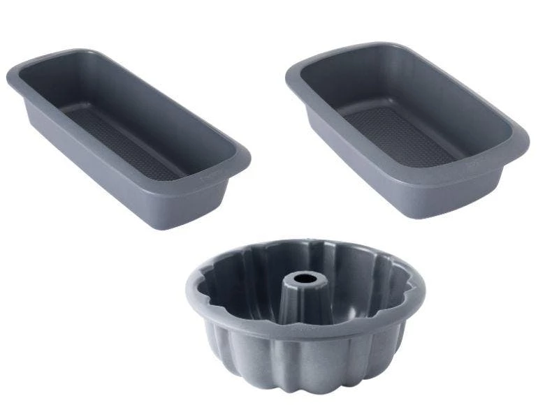 A delicious chocolate cake, banana muffins, a crusty loaf of bread or a crispy pizza. These all conjure up all kinds of tasty treats with the carbon steel gem bakeware! These ingenious bakeware items ensure an excellent result every time, thanks to their functional features including lightweight carbon steel, a high-end non-stick coating. The icing on the cake? The grid lines are perfect for portion control! This set includes 1x loaf pan, 1x cake pan, 1x bundt pan.