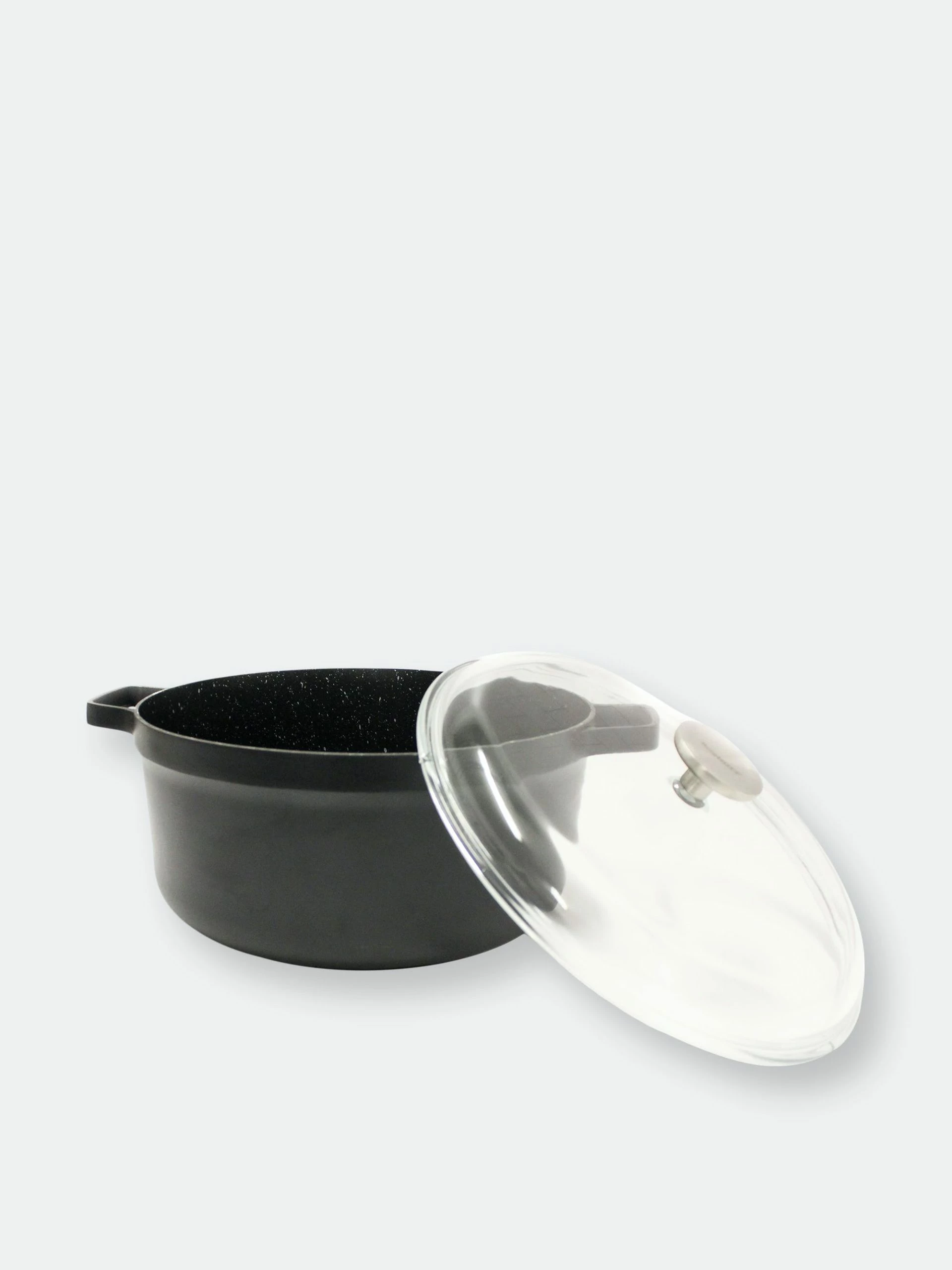 Whether you want to make a chicken stock or a savoury soup, this stockpot will help you bring your recipe to perfection. The glass lid with 18/10 stainless steel knob allows you to cook energy-efficiently while the non-stick coating makes it a dream to clean. Multifunctional, the stockpot is just the right size for cooking large batches of soup, potatoes, pasta, etc. But it still fits in the oven if you decide to make a casserole. Just think of the great smells that will linger in your kitchen! The glass lid allows you to keep a close eye on your cooking while avoiding energy loss. The aluminium reacts quickly to temperature changes, from the heat you need to saute your meat or poultry to the gentle simmer for your pan sauce. Use it on any hob, put it in the oven or take it directly to the table with the easily detachable handle. It’s a great set to prepare your family’s favourites time and again.