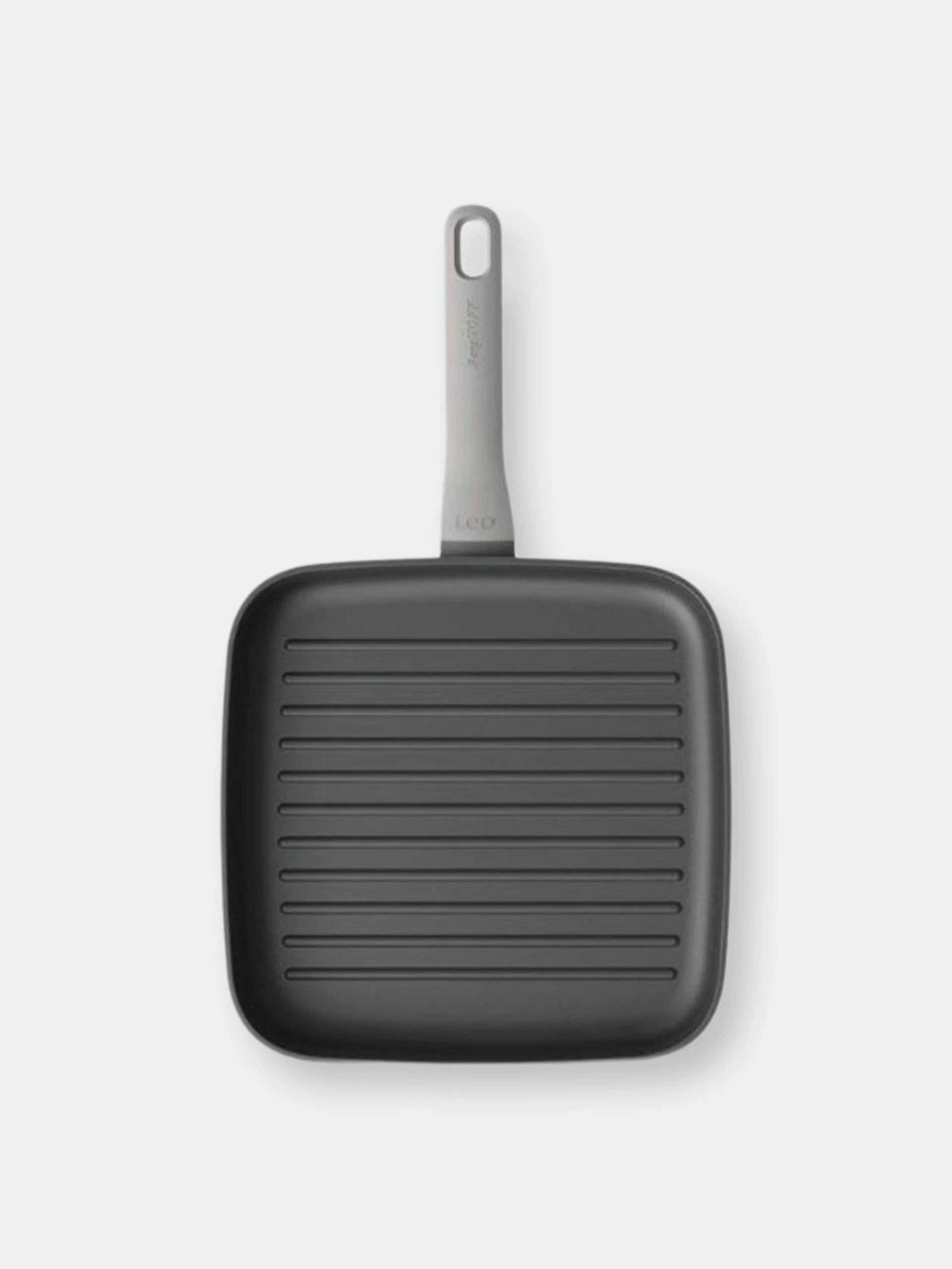 Whether you’re in the mood for a delicious steak, grilled asparagus or a piece of salmon, with this aluminum grill pan you have all you need to grill your food to perfection on any kind of stovetop, including induction. The 24 x 24 cm grill surface is equipped with raised grill lines that give your food those typical grill marks and allow fat and moisture to escape for an extra crispy result. On top of that, the grill pan has a high-quality non-stick coating that guarantees an easy food release as well as a quick clean-up and a stay-cool handle for a comfortable and safe grip. Leo Frypans/ Grill : body 3.3mm/ Induction Bottom 3.6mm