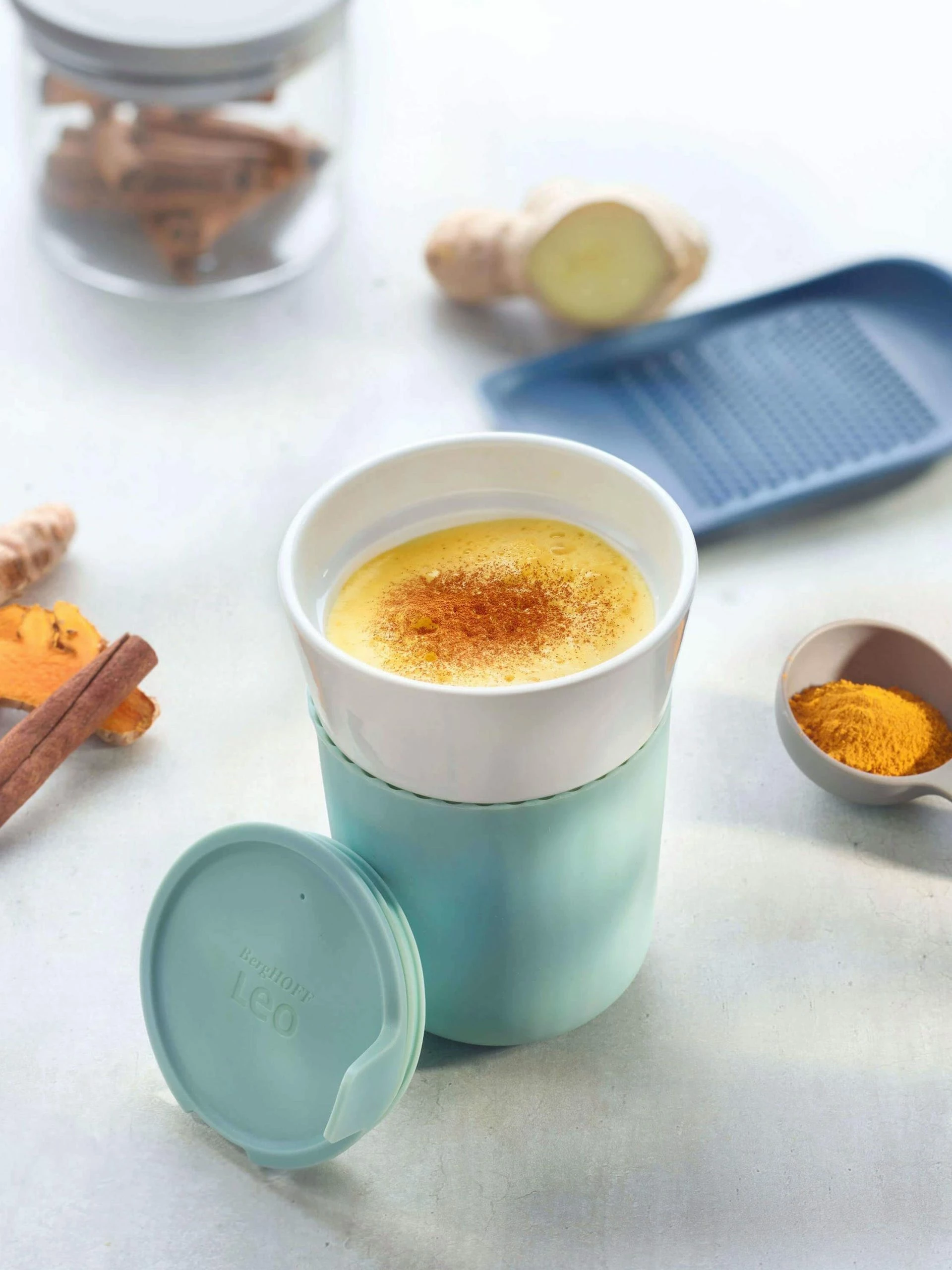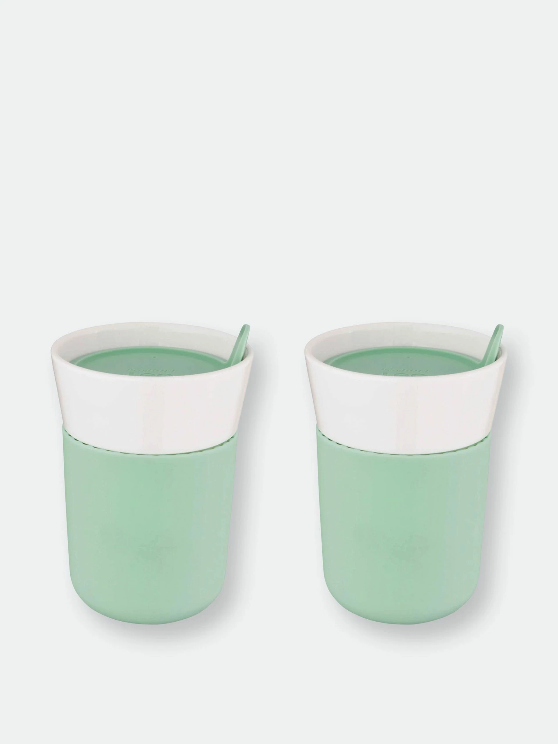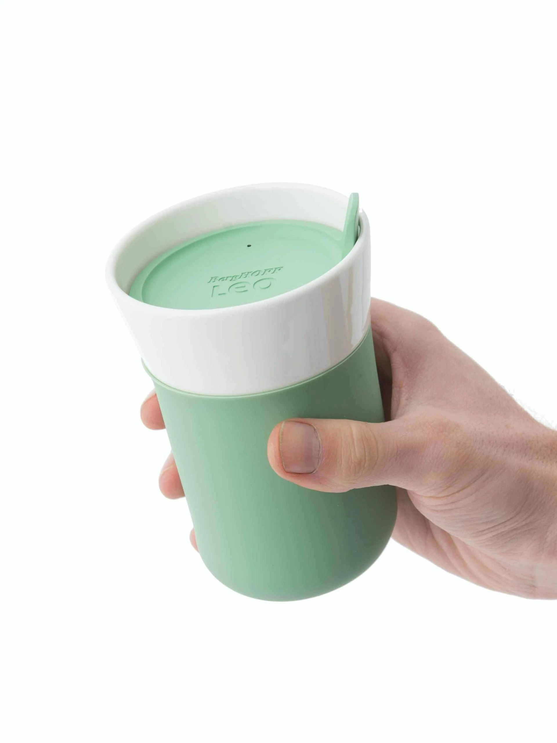 You’re craving a cup of coffee but don’t have the time to stop and take a break? Enjoy your favorite hot beverage on the go in a Leo porcelain travel mug! It fits perfectly under your coffee machine and in your car’s cup holder and comes with a convenient lid with integrated sipping hole. That means you can safely take a sip when you’re on the move and don’t have to worry about spillages. Set of 2.