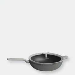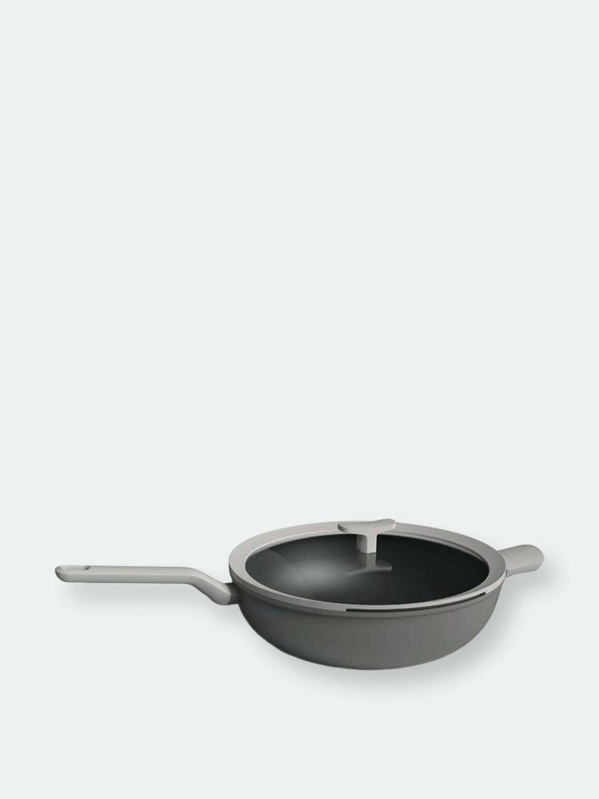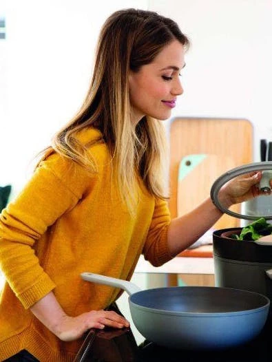 If you’re in love with the smell of a good stir-fry, then you’ll fall for this user-friendly stir fry pan in no time! The pan’s aluminum body ensures a fast and even heat distribution for a perfect fry on any kind of stovetop and is covered with a high-quality non-stick coating that allows you to cook with little to no fat. Tossing the ingredients in the pan is a piece of cake thanks to the soft-touch stay-cool handle, just like keeping the food warm and even straining it by means of the clear glass lid with integrated straining function.