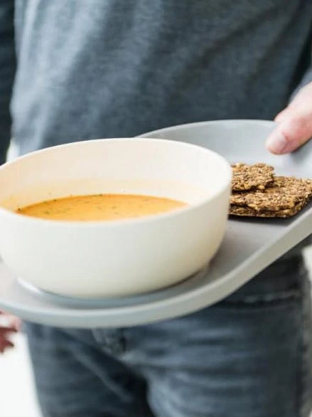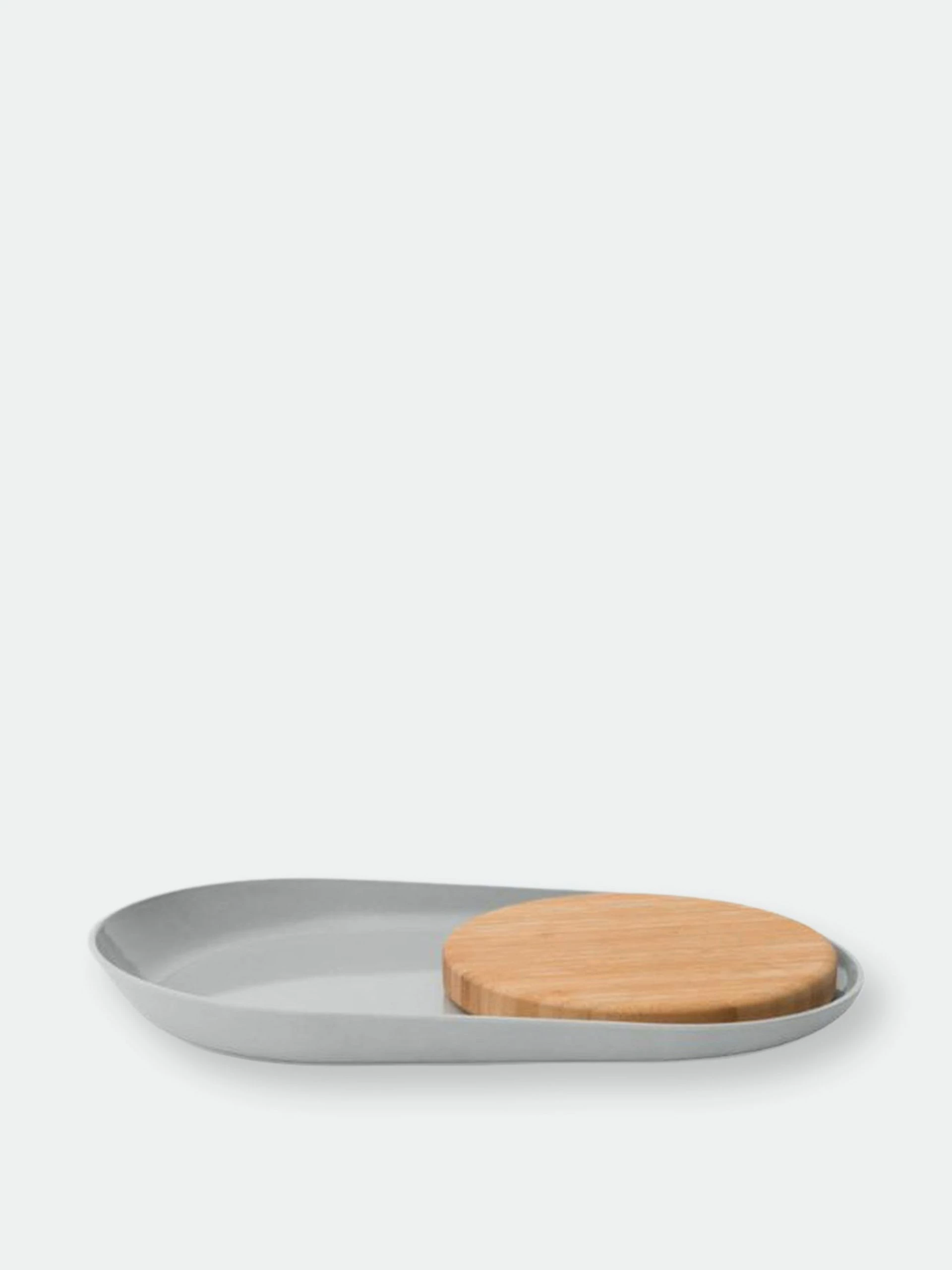 Oval plate with bamboo cutting board. It might seem like an odd combo; a bamboo board on an oval plate but it’s certainly an interesting way to serve your outdoor dinner. Meat or fish goes on the wood while fries, vegetables and sauces have plenty of room on the plate. Got a big appetite? Just place the bamboo board next to the plate and enjoy those extras. Or why not replace the bamboo board by a soup bowl and serve up some freshly-baked bread on the side? The choice is yours!