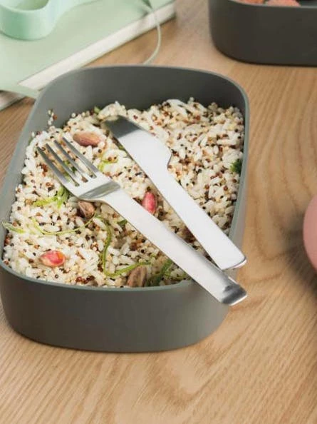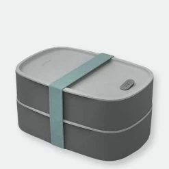 Pack a complete lunch in this dual lunch box. Whether you’re at school, at the office or enjoying a cozy picnic, it’s the perfect solution to take a healthy and balanced meal with you on all of your adventures. The two-tiered compartments are kept together with a convenient elastic strap and are microwave safe as well as freezer proof!