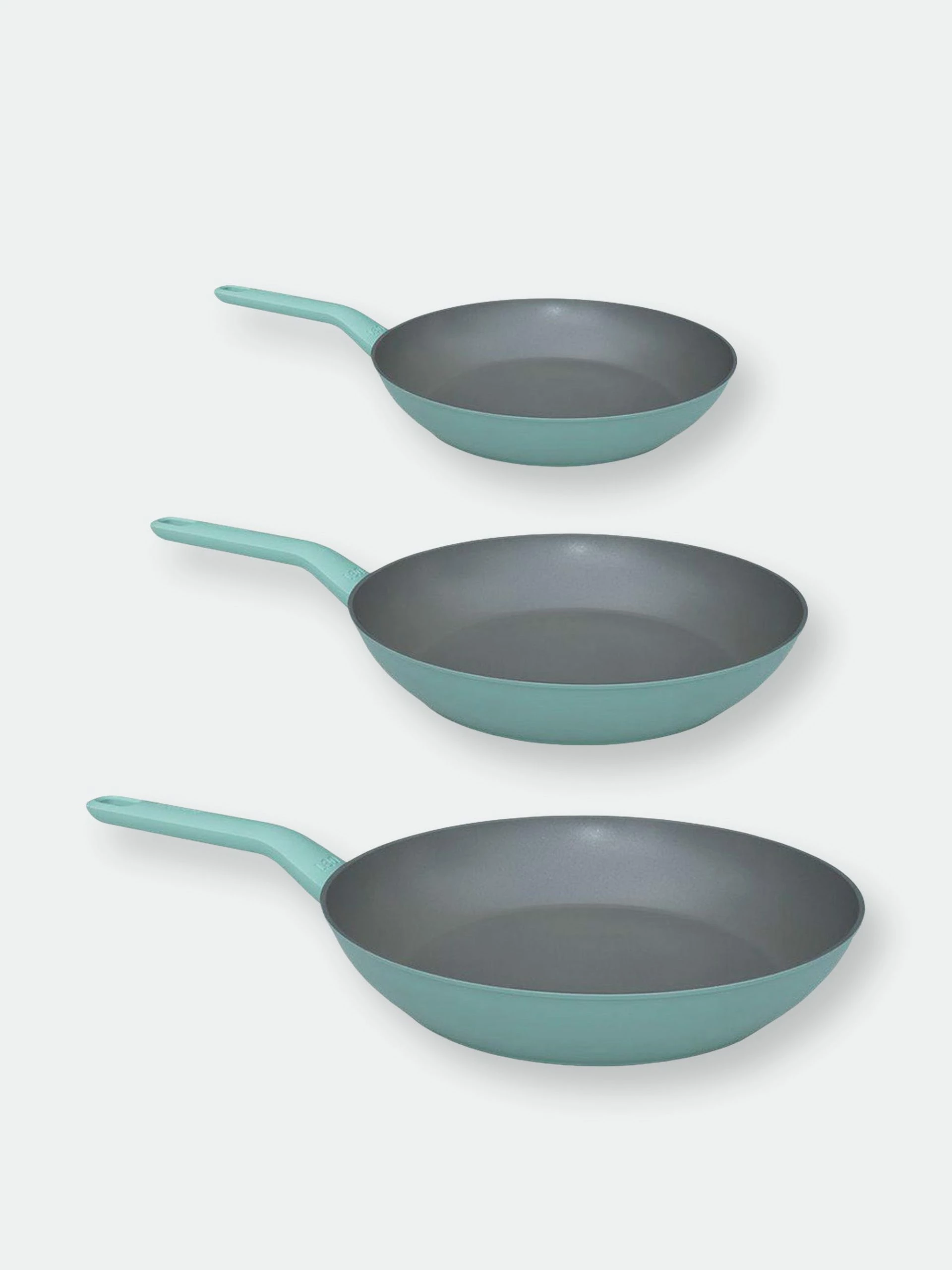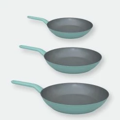 Whether you want to make breakfast for the entire family, brown a piece of meat or make a frittata, this 3 piece frying pan set is up for the job. With their aluminum body that guarantees a fast and even heat distribution and high-quality non-stick coating which allows you to cook with little to no oil, these pans ensure an efficient performance on any kind of stove, induction included. On top of that, the sturdy stay-cool handle that’s soft to the touch provides a good grip so you can safely take the pan from the stove to the table for serving where the non-stick coating guarantees an easy food release.