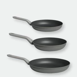 Whether you want to make breakfast for the entire family, brown a piece of meat or make a frittata, this 3 piece frying pan set is up for the job. With their aluminum body that guarantees a fast and even heat distribution and high-quality non-stick coating which allows you to cook with little to no oil, these pans ensure an efficient performance on any kind of stove, induction included. On top of that, the sturdy stay-cool handle that’s soft to the touch provides a good grip so you can safely take the pan from the stove to the table for serving where the non-stick coating guarantees an easy food release.