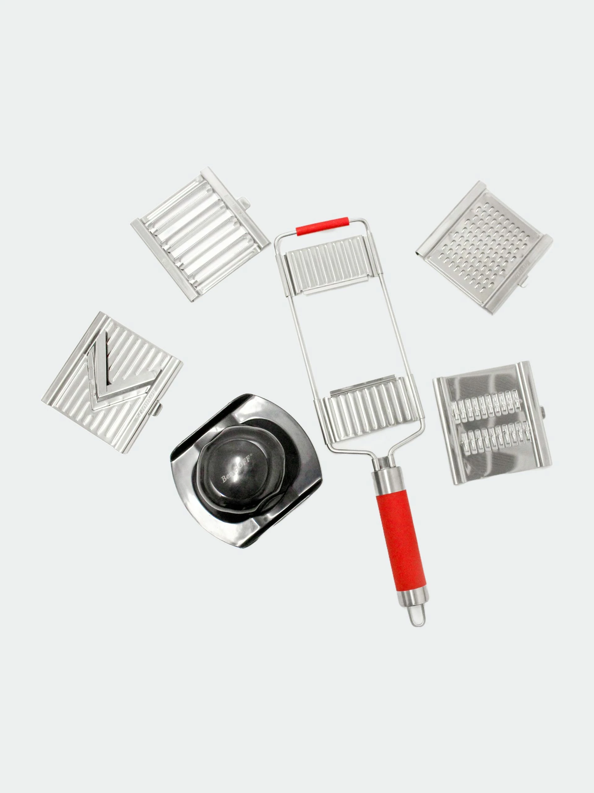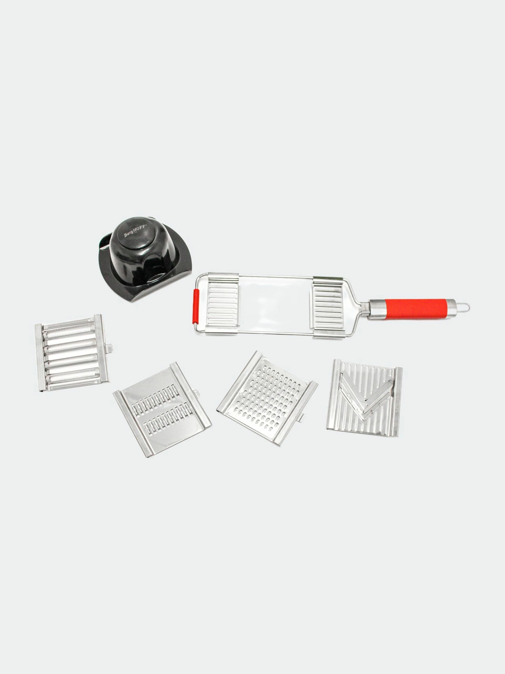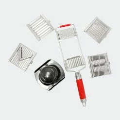 Multi slicer with interchangeable extra-sharp stainless steel double blades. Cuts quickly in both directions.