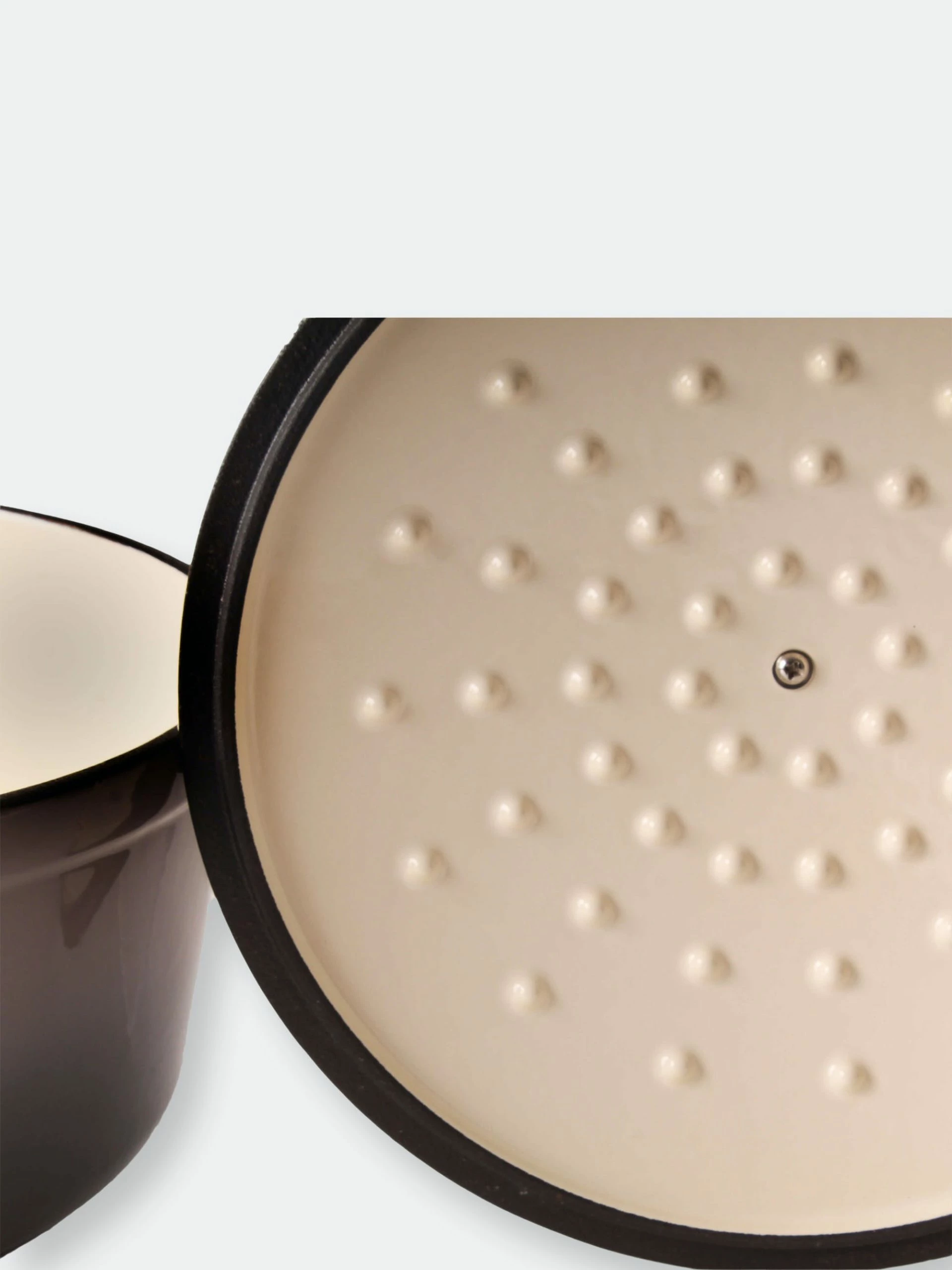 The 3qt neo cast iron round dutch oven is a modern collection that marries function, design and innovative use of materials to create an outstanding line of cast iron cookware. The neo cast iron is marked by pure lines giving each product its own identity and functionality. The covered dutch oven are ideal for slow cooking stews, braising, baking and so much more. It is enameled inside and out and suitable for all heat sources including, gas, electric, induction and ceramic.