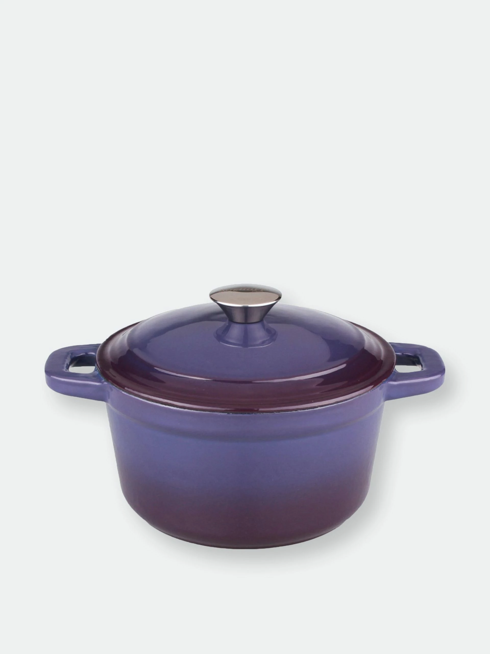 The 3qt neo cast iron purple dutch oven dish is a modern collection that marries function, design and innovative use of materials to create an outstanding line of cast iron cookware. The neo cast iron is marked by pure lines giving each product its own identity and functionality. The covered dishes are ideal for slow cooking stews, braising, baking and so much more. It is enameled inside and out and suitable for all heat sources including, gas, electric, induction and ceramic.