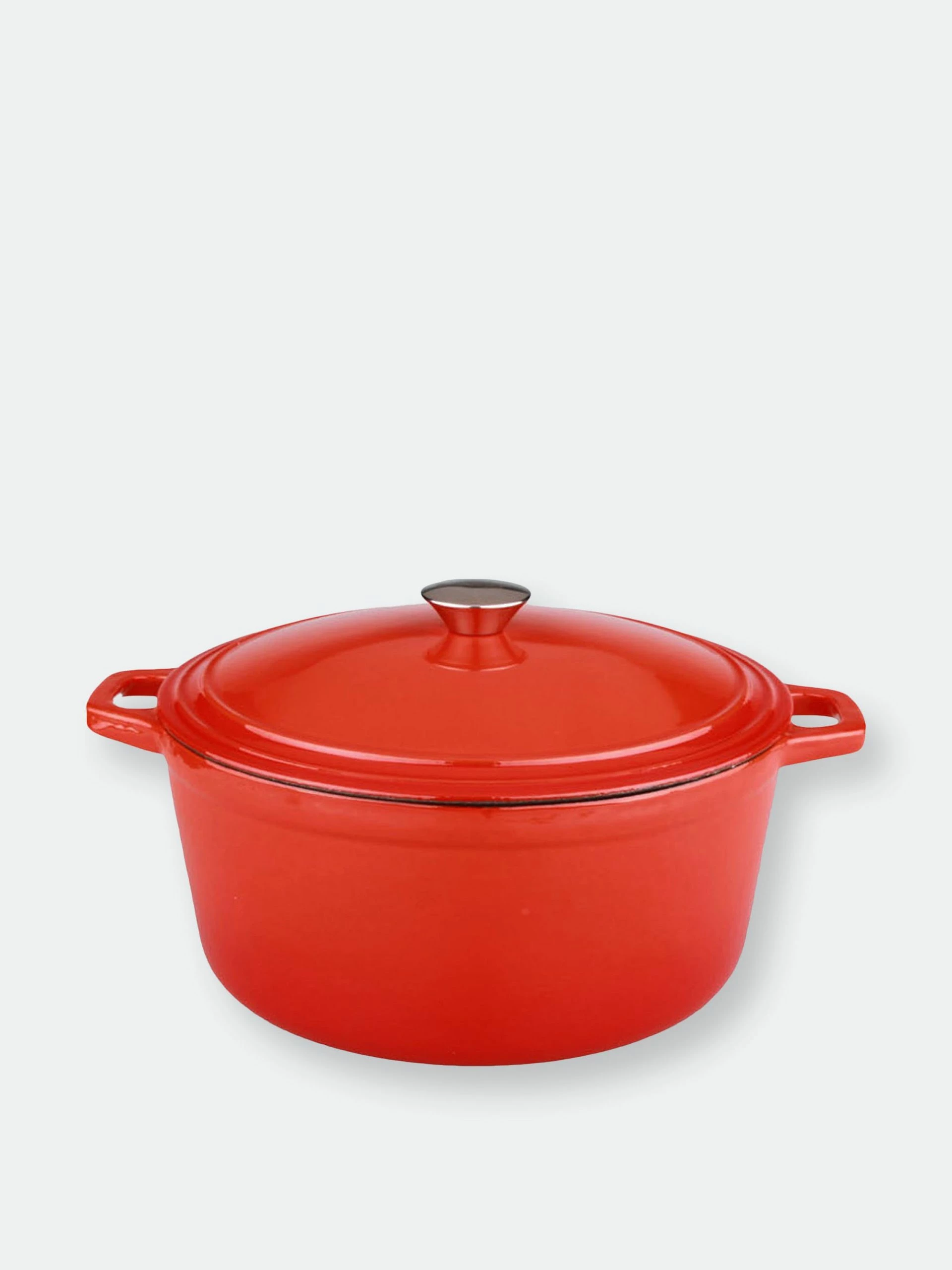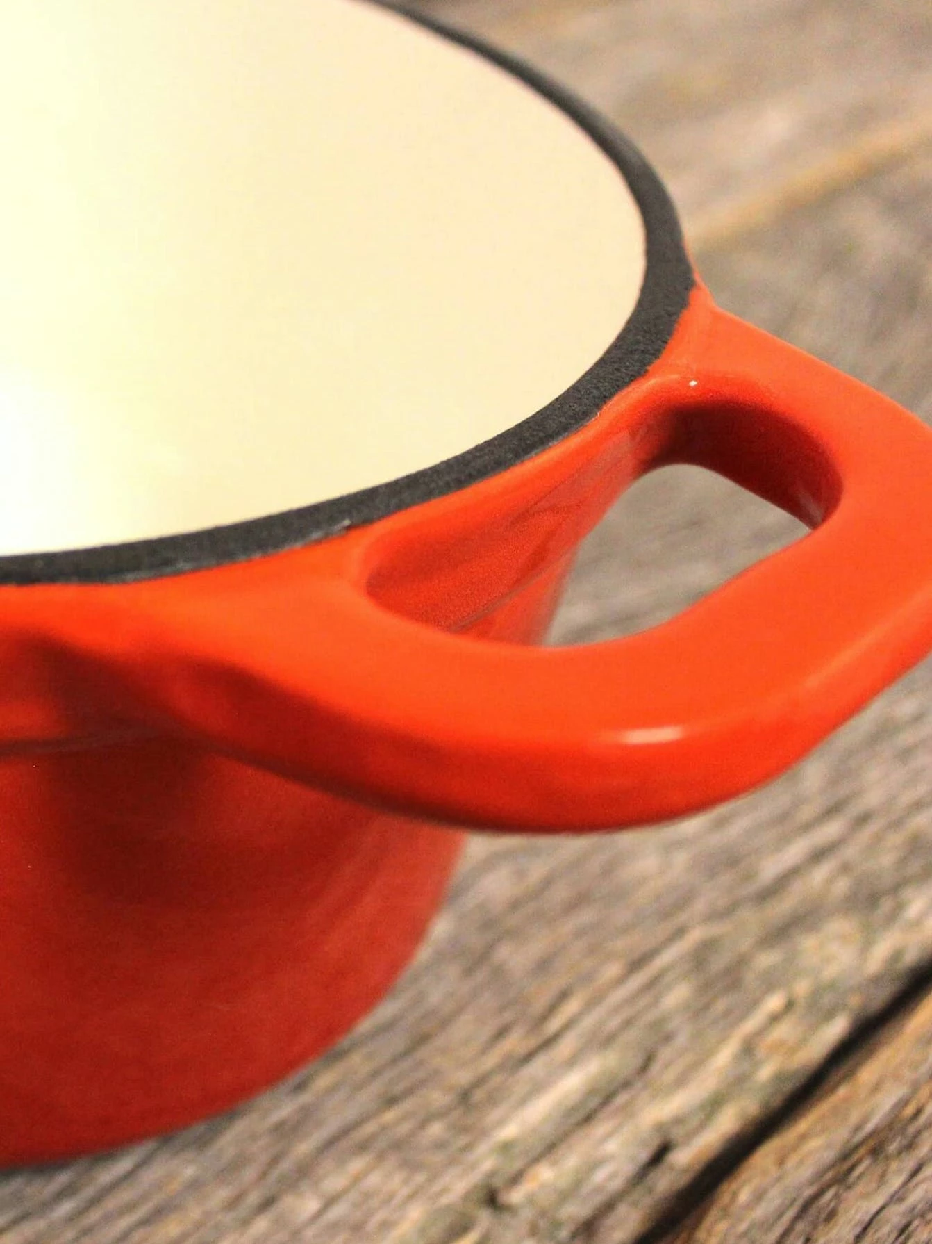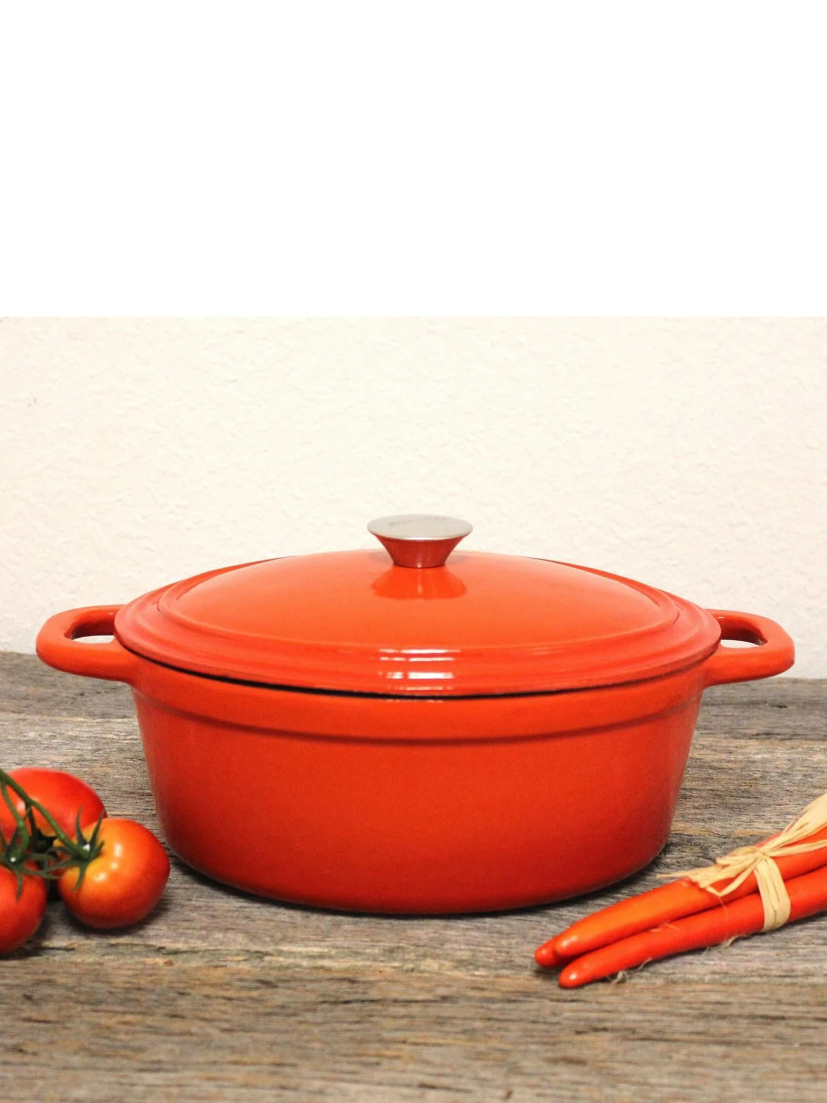 The 5qt Neo Cast Iron Orange Oval dish is a modern collection that marries function, design and innovative use of materials to create an outstanding line of cast iron cookware. The Neo cast iron is marked by pure lines giving each product its own identity and functionality. The covered casseroles are ideal for slow cooking stews, braising, baking and so much more. It is enameled inside and out and suitable for all heat sources including, gas, electric, induction and ceramic.