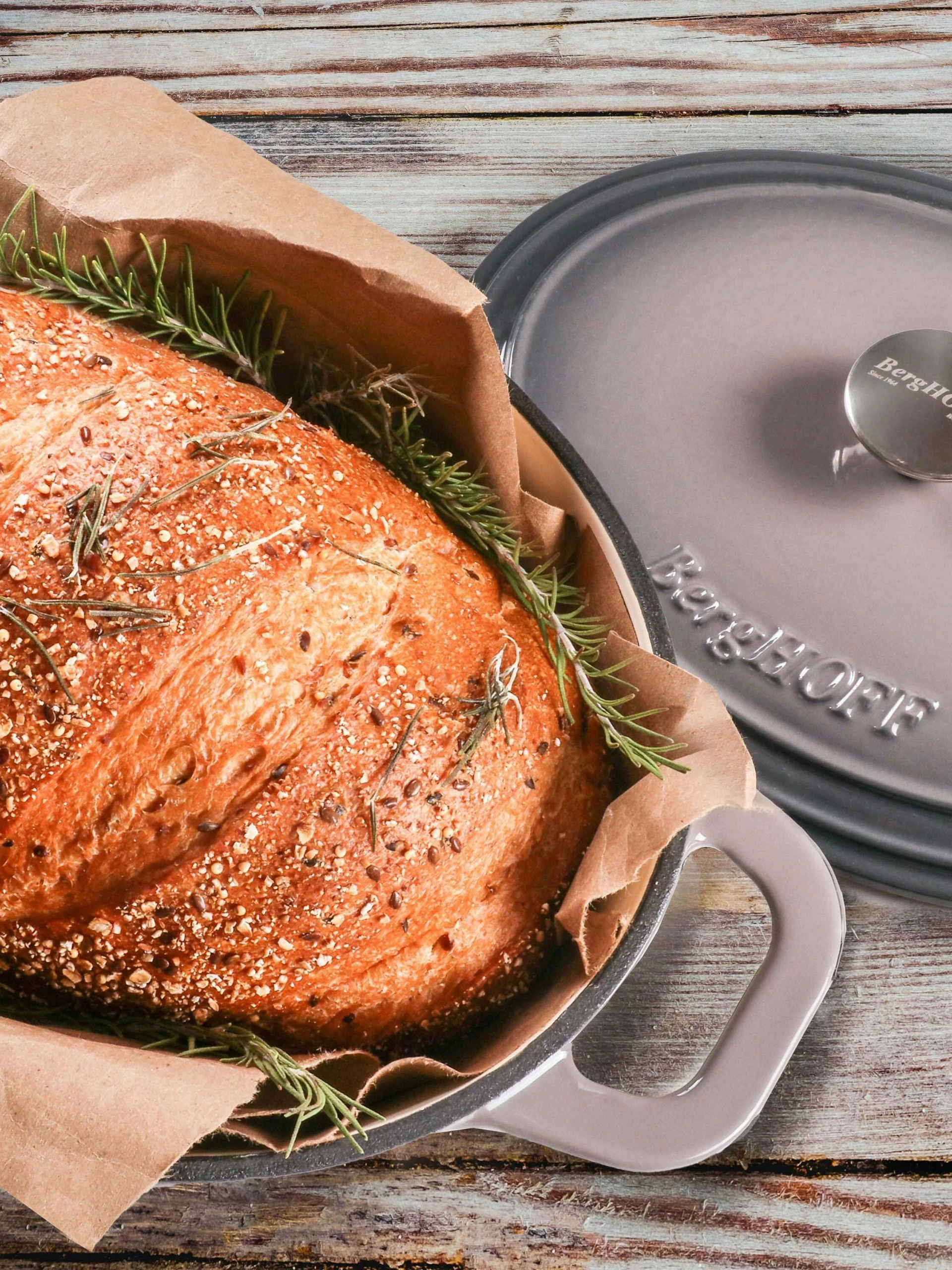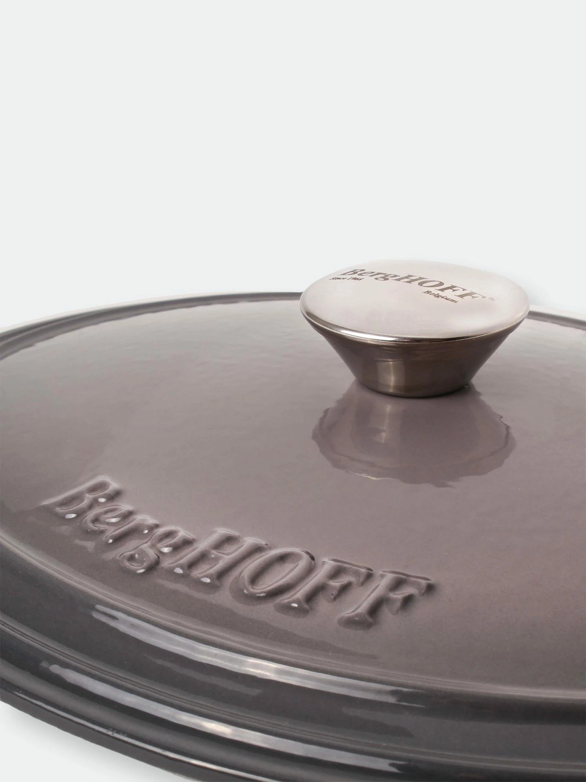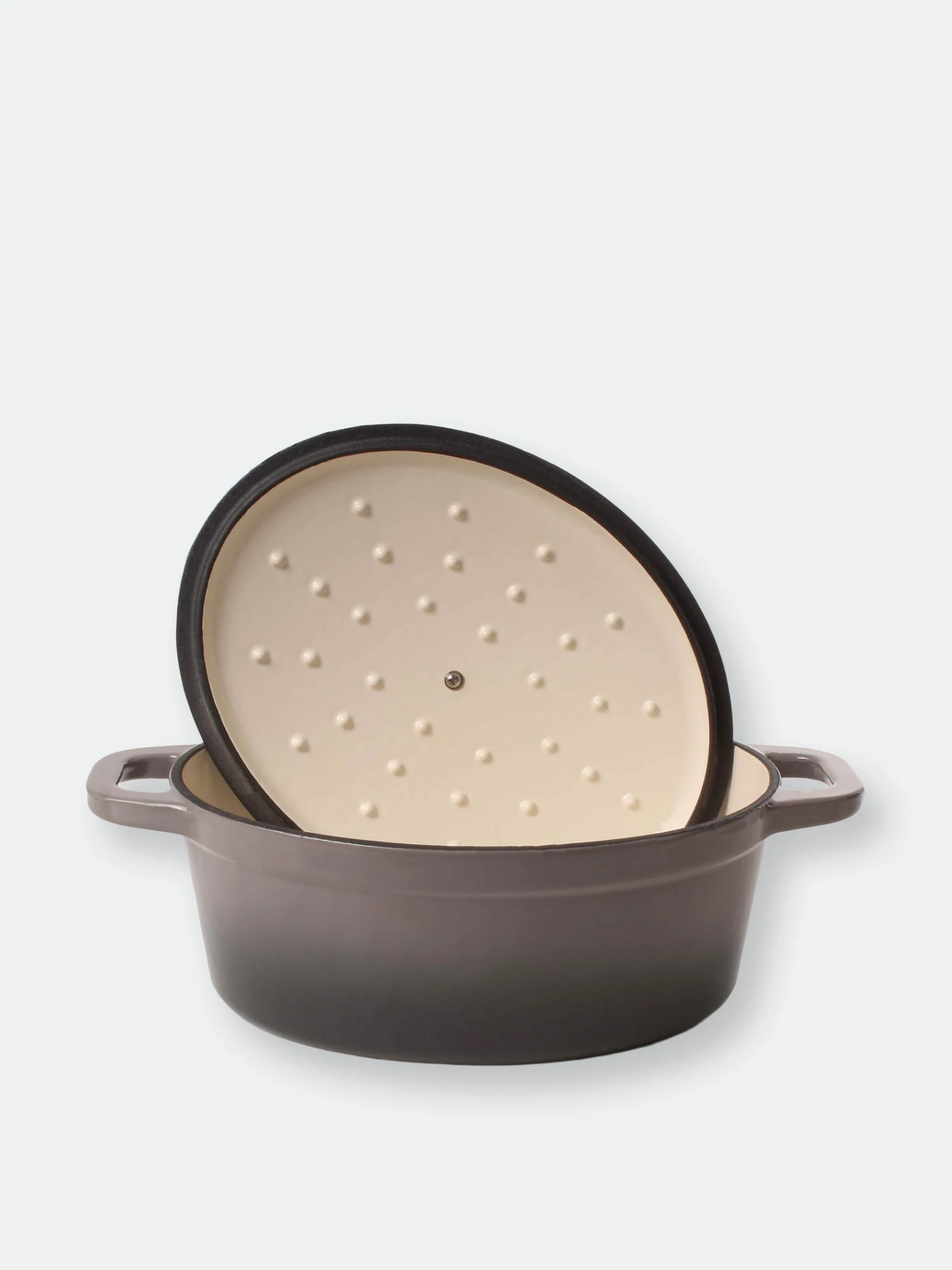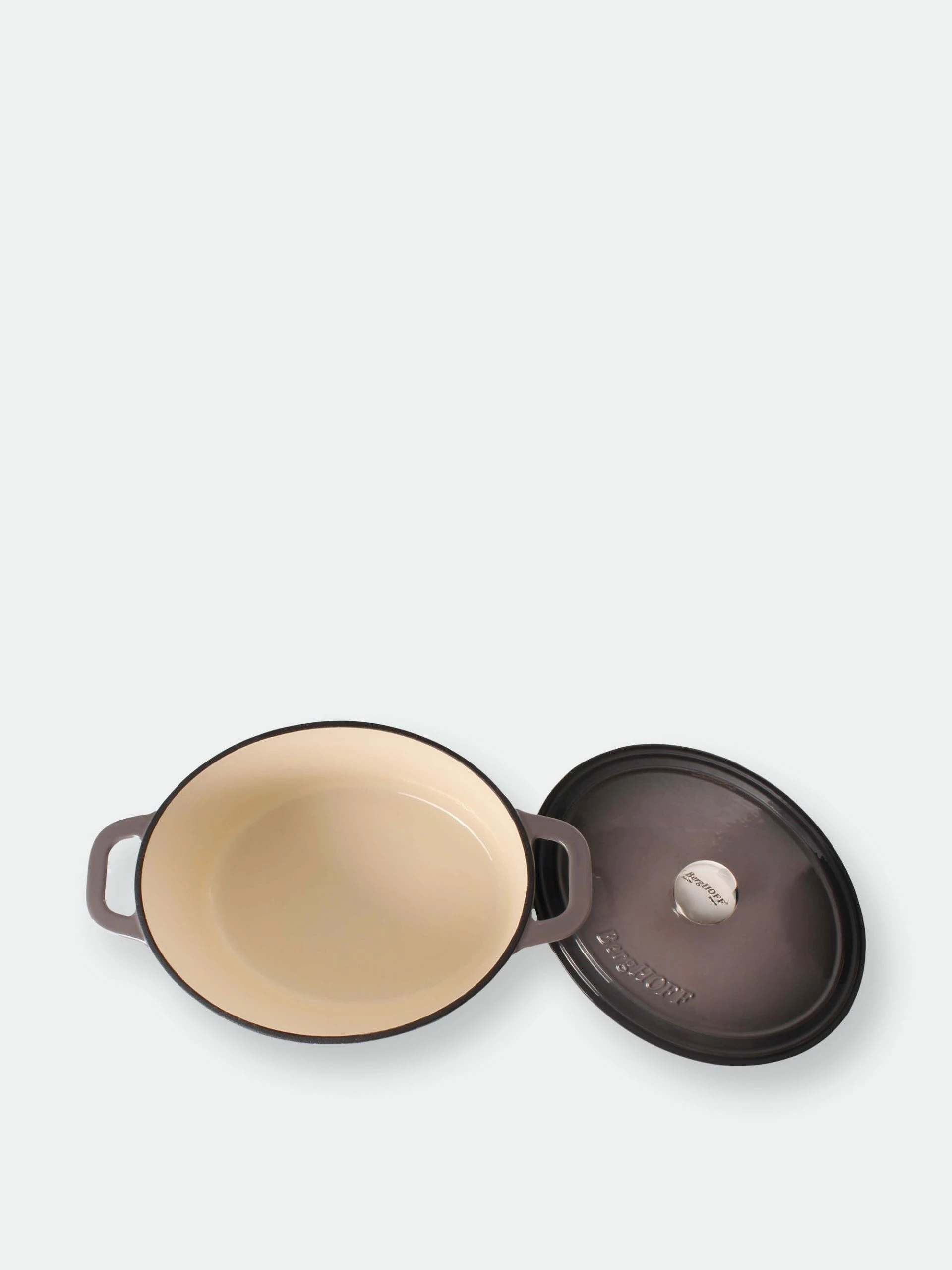 The 5qt Neo Cast Iron Oval Dutch Oven is a modern collection that marries function, design and innovative use of materials to create an outstanding line of cast iron cookware. The Neo cast iron is marked by pure lines giving each product its own identity and functionality. The covered dutch oven are ideal for slow cooking stews, braising, baking and so much more. It is enameled inside and out and suitable for all heat sources including, gas, electric, induction and ceramic. Warranty: 1 year limited warranty