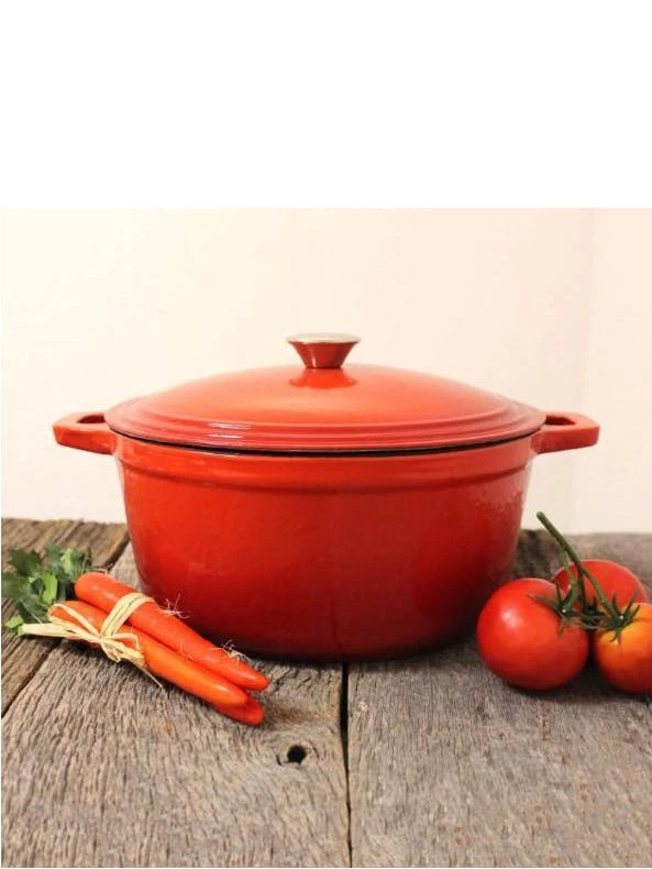The 7qt Neo Cast Iron Orange Round dish is a modern collection that marries function, design and innovative use of materials to create an outstanding line of cast iron cookware. The Neo cast iron is marked by pure lines giving each product its own identity and functionality. The covered casseroles are ideal for slow cooking stews, braising, baking and so much more. It is enameled inside and out and suitable for all heat sources including, gas, electric, induction and ceramic.