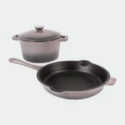 BergHOFF’s Neo Enameled Cast Iron is built to last for years to come. Crafted from durable cast iron with an enameled body this cookware heats up evenly and stays hot longer. The ergonomic handles provide a secure grip. This 3pc set includes one 10″ fry pan and one 3qt covered dutch oven. Cook like a pro with the versatile dutch oven that can go effortlessly from browning on the stove top to roasting in the oven. Braise short ribs, make hearty stew, three bean chili, curry chicken, and so much more. The beautiful cast iron fry pan with its sturdy handle is another multipurpose tool in your kitchen arsenal. Use the fry pan to make succulent lamb chops, crispy bacon, and even a delicious cake. Fry pan has an integrated pour spout which allows you to easily drain any unwanted fat from the pan. Neo cast iron cookware is suitable for all cooktops including gas, electric, ceramic, glass, and induction. Neo cast iron cookware is also oven ready. You can sear your food on the stovetop, and finish in the oven.