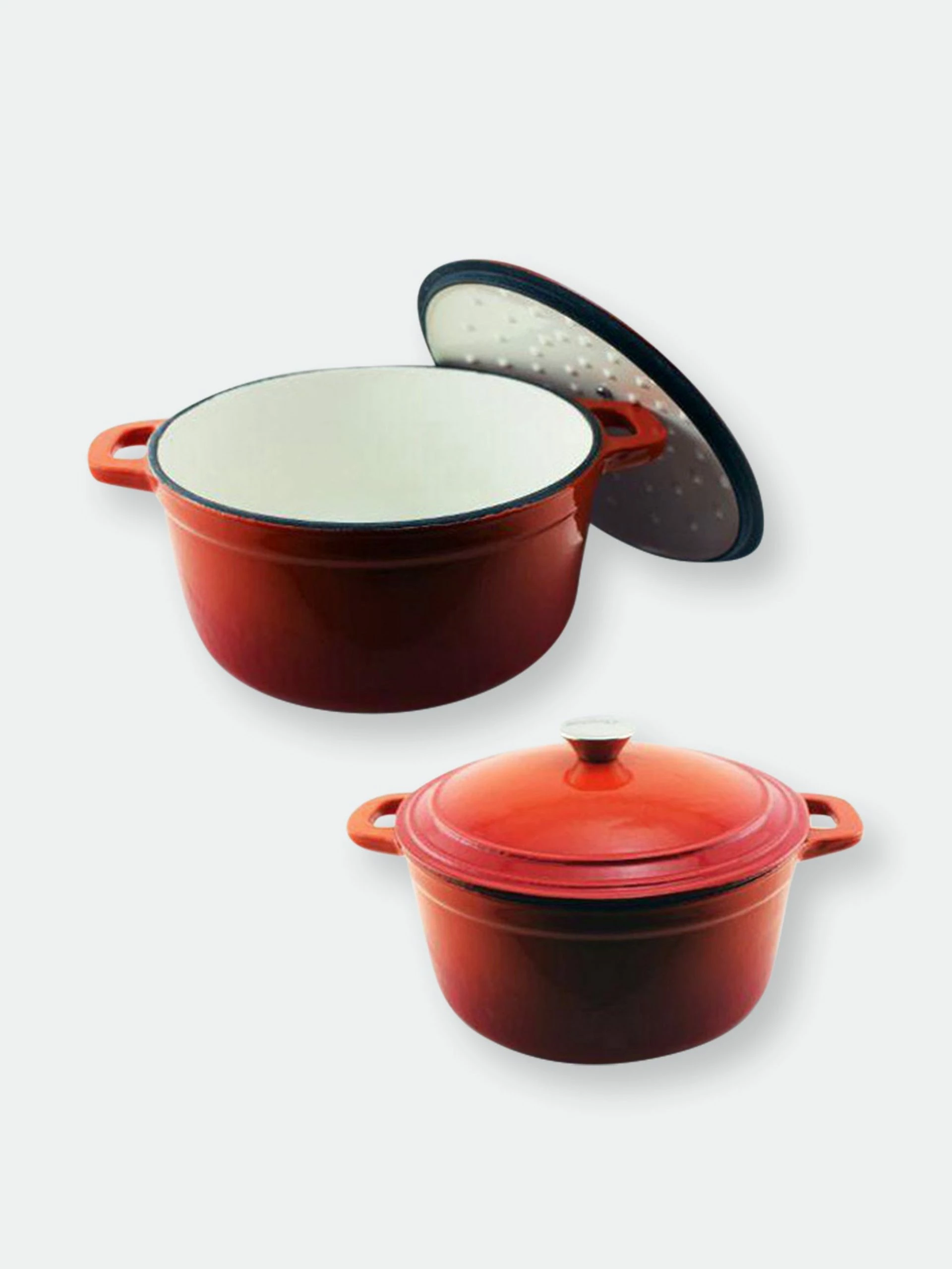 The Cast Iron has great heat retaining abilities and can be used on any heat source. Classic in a modern design, solid material for all your cooking needs! Oven safe up to 400°F.