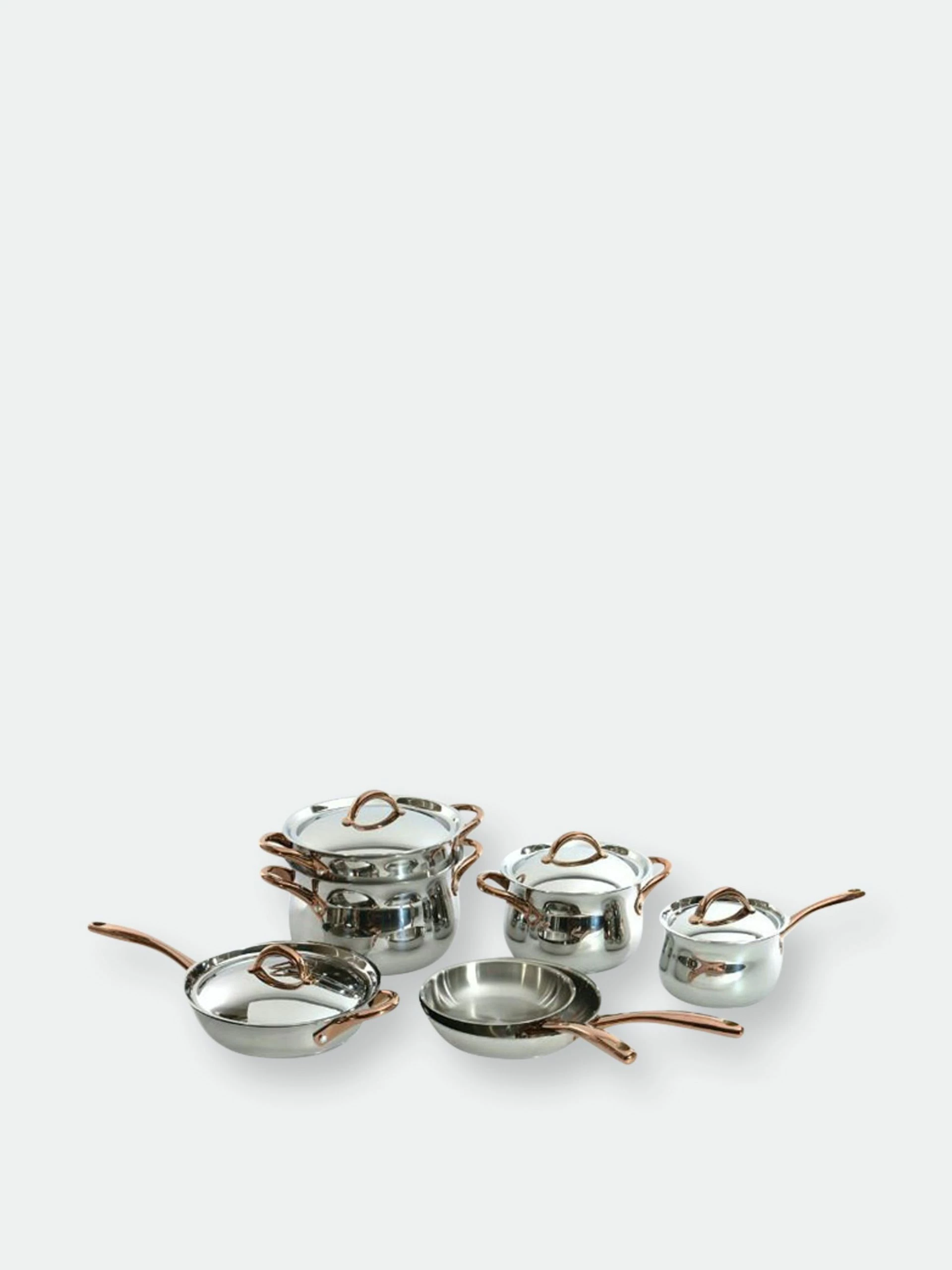 Studio’s 11 Pieces Cookware set is designed for energy-efficient cooking and even heat transfer throughout the complete surface. High-quality 18/10 stainless steel lid seals the pots, preventing moisture and juices from escaping.