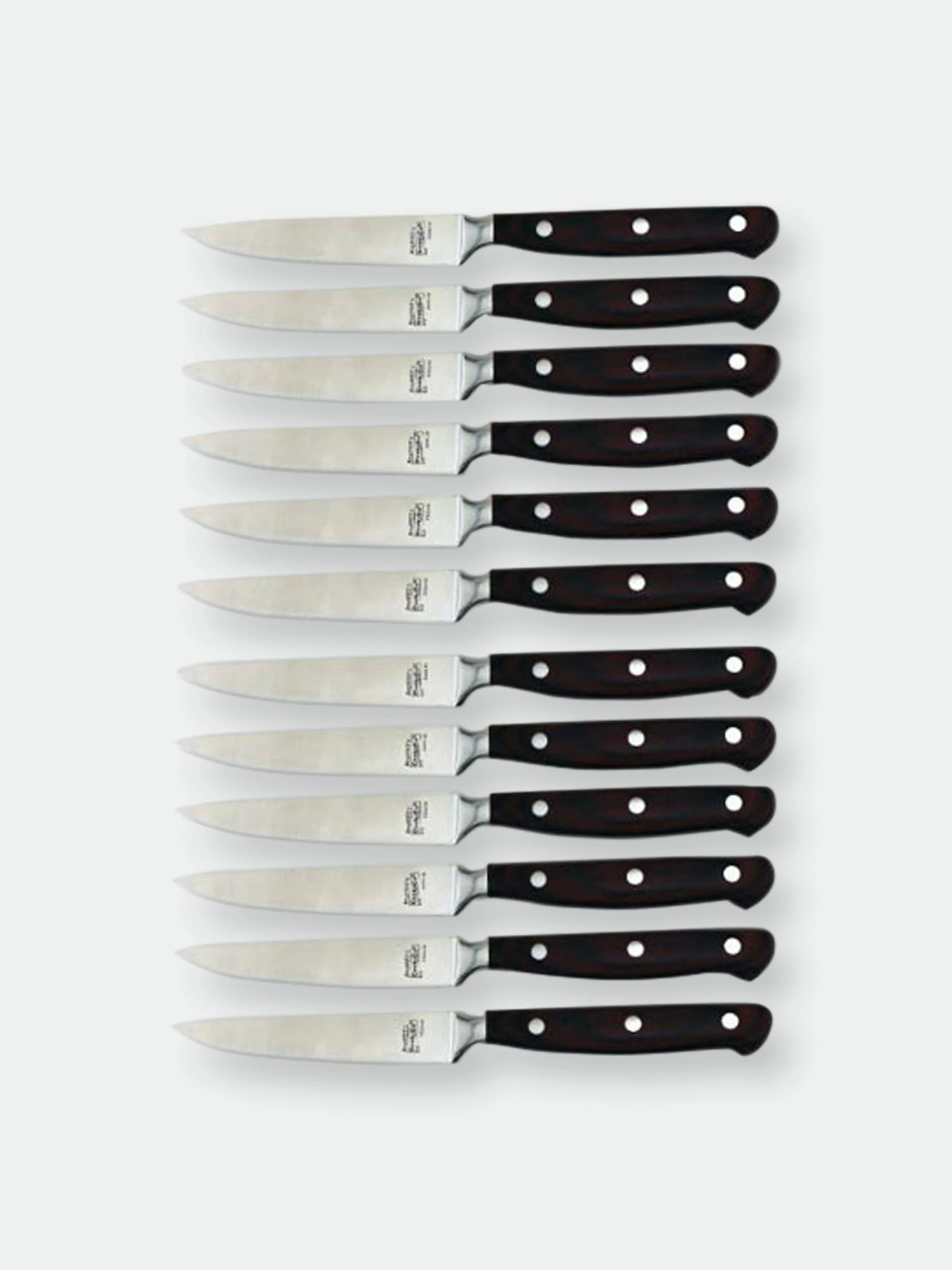 Pakka’s 12 Pieces Steak knife set is made of durable high-quality stainless steel is absolutely indestructible and corrosion resistant. The highly polished surface is hard wearing, thick, easy to clean and hygienic. Advanced manufacturing methods plus traditional craftsmanship guarantee flawless product quality.