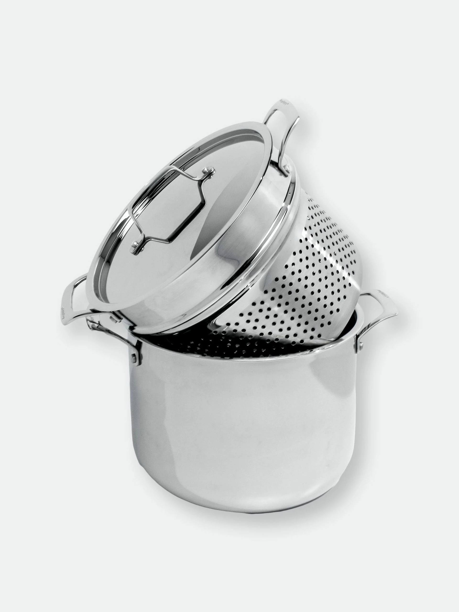 Professional, versatile, high-end straight shape cookware designed for repeated usage by BergHOFF Belgium. Tri-Ply Construction with aluminum core between 18/10 stainless steel & magnetic stainless steel layers for fast and efficient heat conductivity on all sides, not just bottom. The high-quality 18/10 Stainless Steel with 3-layer capsule base is perfect for energy saving and even heat distribution. These pots and pans come with heavy gauge and deep-seated stainless steel lid seals in heat and moisture with sleek professional look. Non porous stainless steel cooking surface is safe for use with all kind of utensils. The convenient capacity marking inside each of pot helps you to control the portion for healthier cooking. Comfortable & elegant cast stainless steel dual riveted handle for extra strength. Suitable for all kind of heat sources like Induction, Electric, Gas, Halogen, Vitro-ceramic. The polish finished exterior makes it very easy to clean. Oven, Boiler and Freezer Safe. Dishwasher Safe. Environment-friendly cookware.