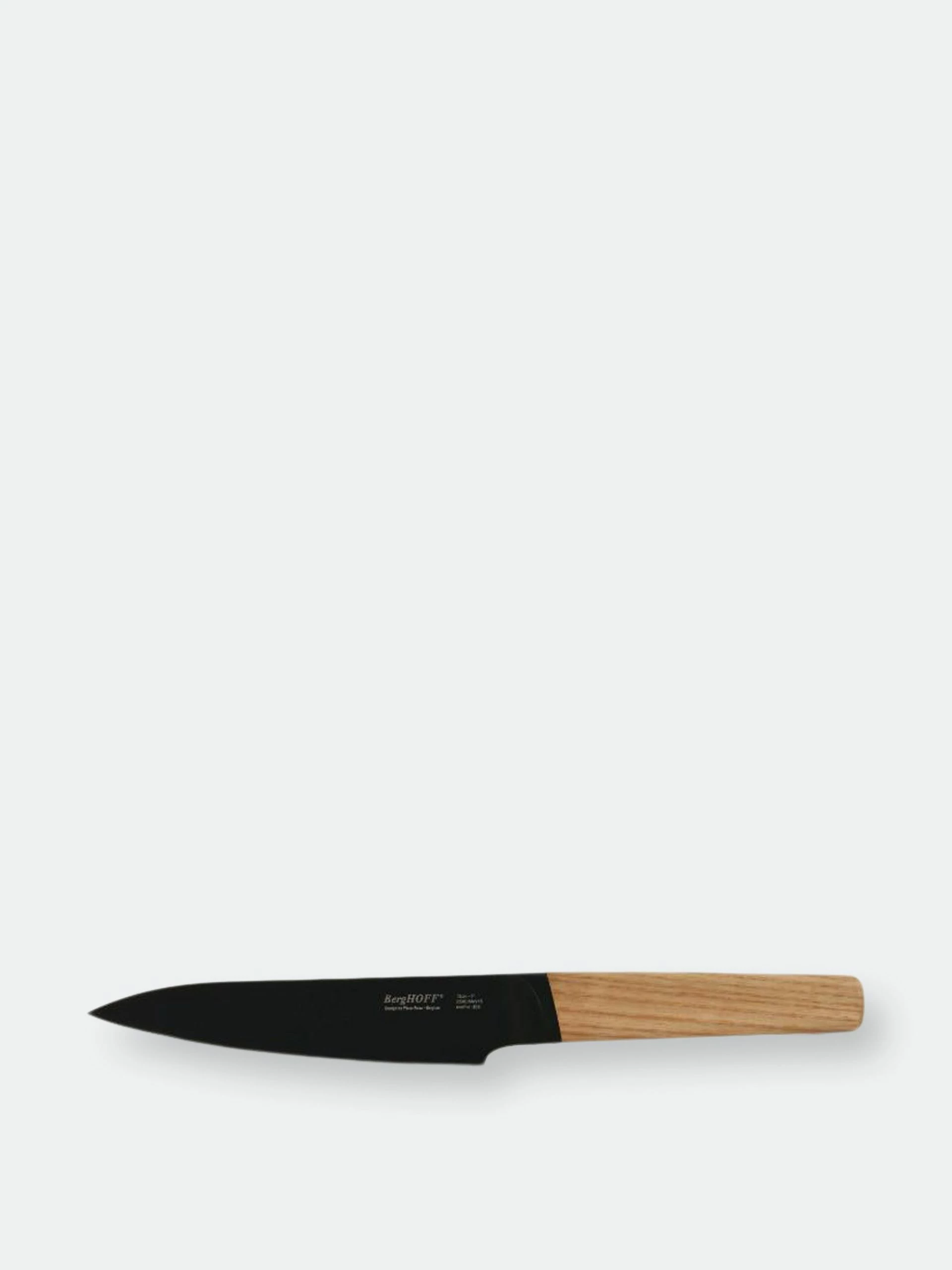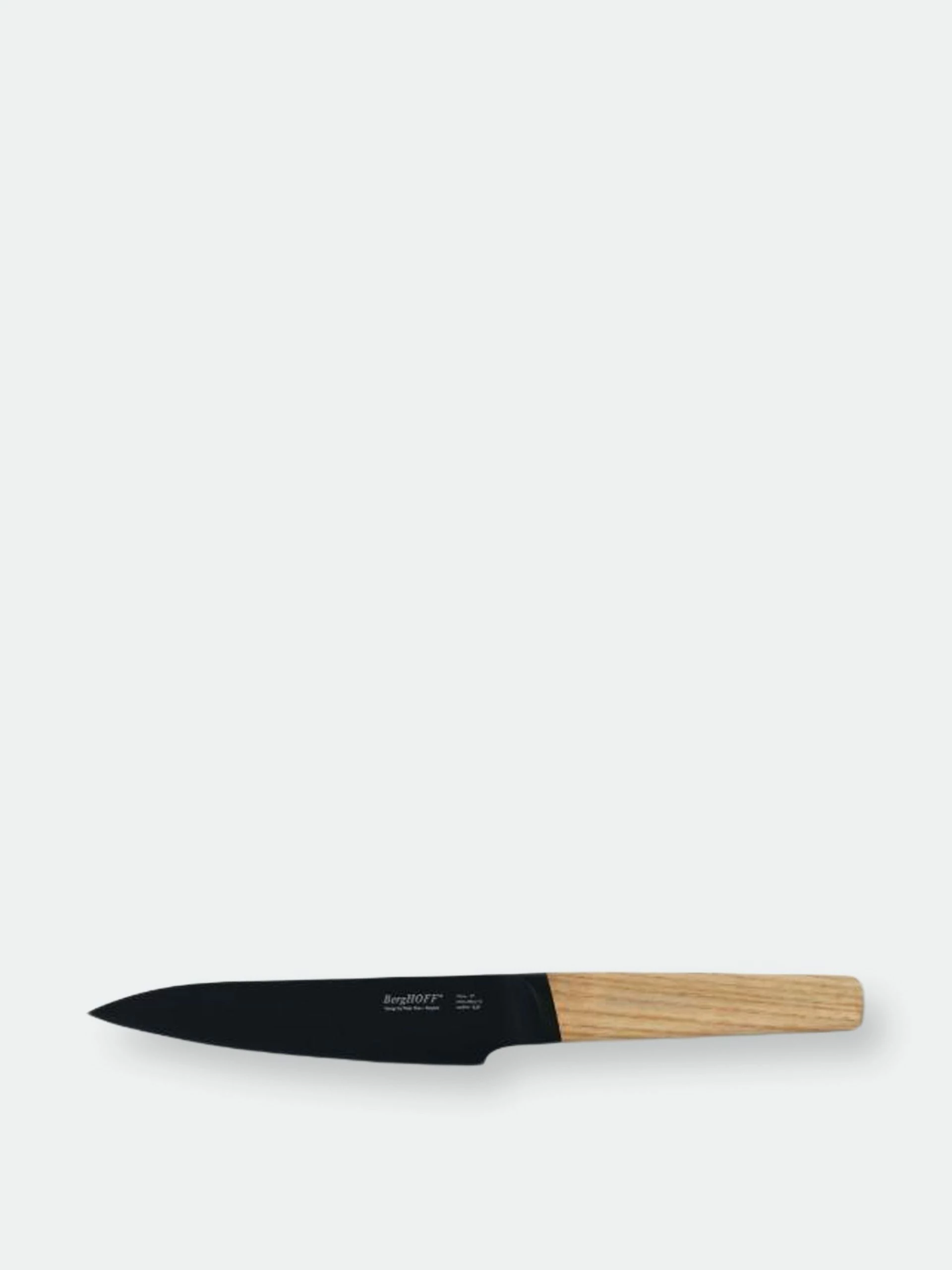 The Ron 5″ Ash Utility Knife offers a range of versatile knives for the most common jobs in the kitchen. Choose from black steel knives featuring a titanium and non-stick coating with either contrasting ashwood handles or matching black handles. Or simply don’t choose and mix the two styles. Well balanced with a heavy bolster providing perfect balance for increased control. Handle: 18/10 Stainless Steel Hollow Handle, Blade: Chrome-molybdenum-Vanadium steel with a black layer coating (titanium + non-stick coating)