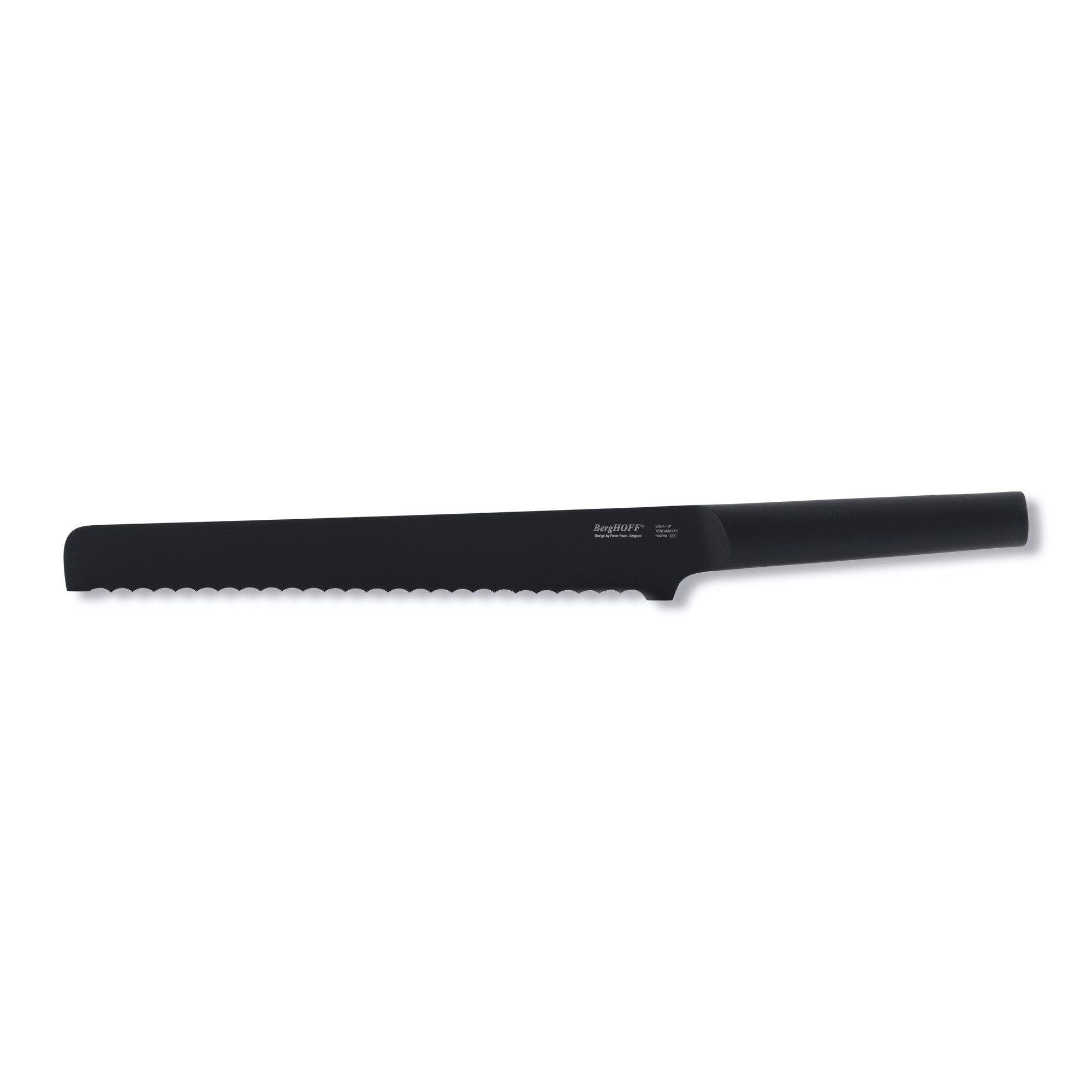Modern in matte versatile ash wood knife block includes five black knives: bread, chef’s, santoku, bread, paring and utility knives in a linear wooden block. The knives‘ non-stick coating allows sliced foods to slide right off, making both cutting and cleaning a breeze. This striking set of knives stands out on your countertop, looking as good as it functions. A fabulous wedding, housewarming or graduation gift.