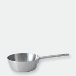 7″/1.4qt Conical Sauce Pan is made up of Four different materials in 5-layers are arranged in an inventive alliance for evenly spreading the heat. Bottom and body from one seamless unity guaranteeing that the heat spreads very fast from base up to the rim. Cold grip handles offer safety and comfort. 18/10 Stainless Steel