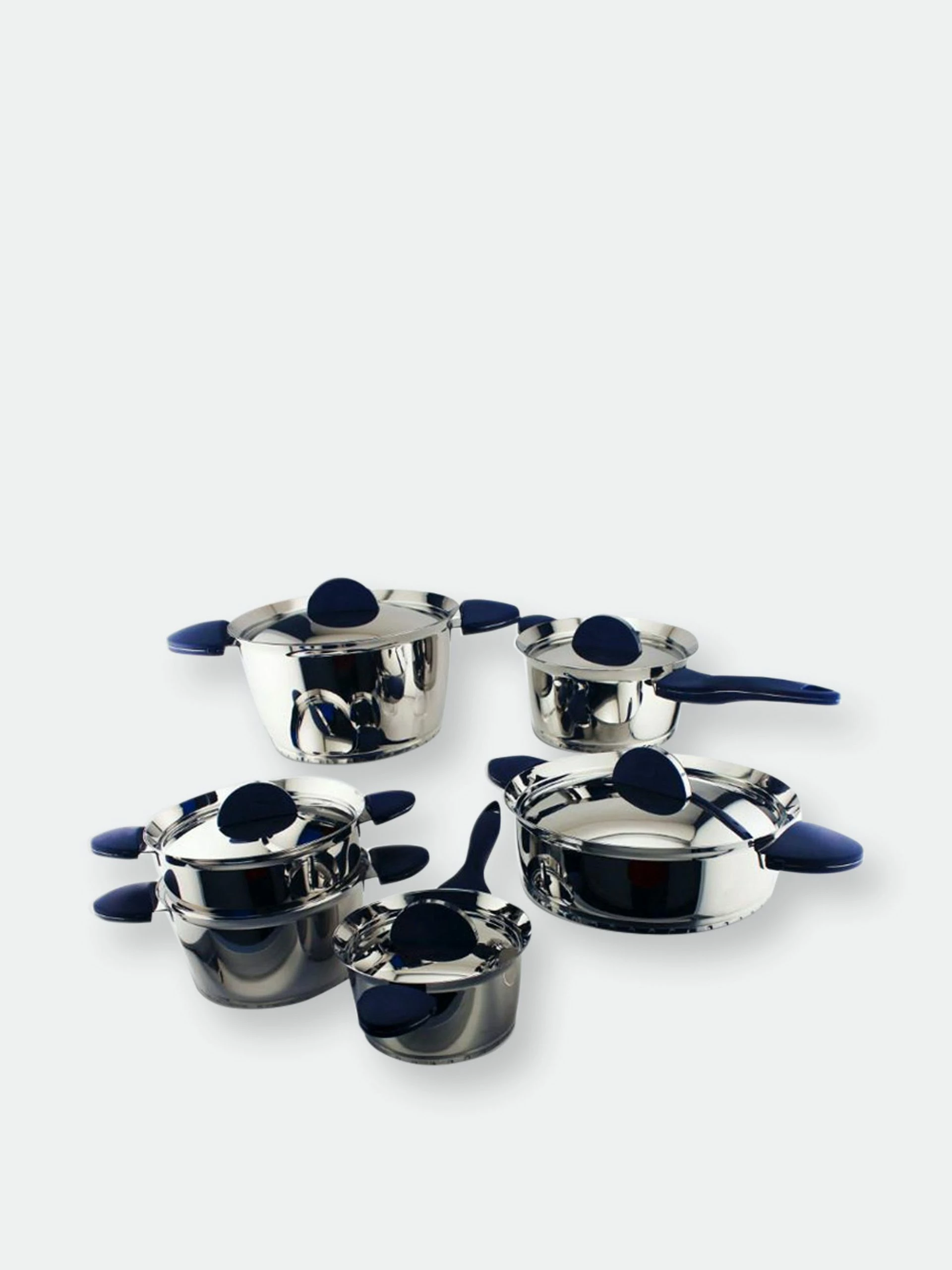 The Stacca cookware set is perfect for those with limited space as the convenient design allows for each piece to neatly stack inside the next. Don’t forget the stay cool removable silicone handles that can be placed on all of the handles, they are designed to fit this cookware set perfectly. Constructed from stainless steel with a mirror-like finish, inside and out.