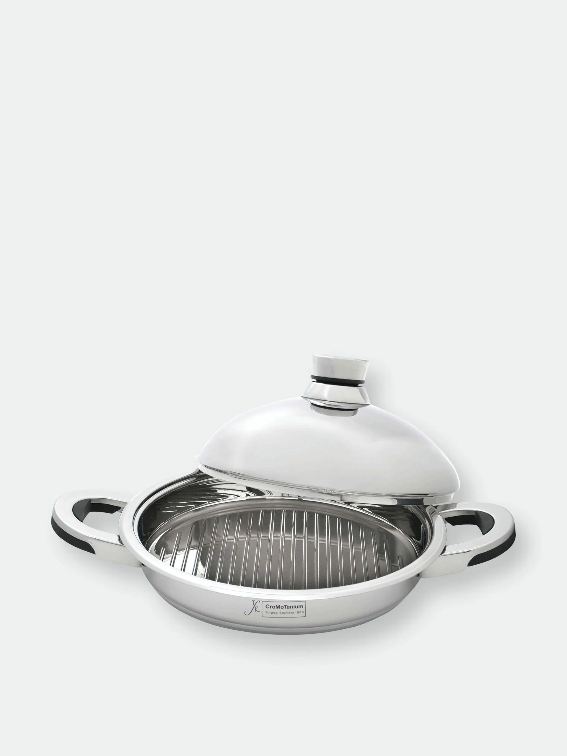 Grill perfectly prepared meats and veggies without the hassle of an outdoor grill and fickle weather patterns. Use the cover to create a vapor seal and cook at lower temperatures in less time while food self-bastes in its natural juices. With the assistance of a precision Thermo-knob for monitoring and helping maintain accurate cooking temperatures, you