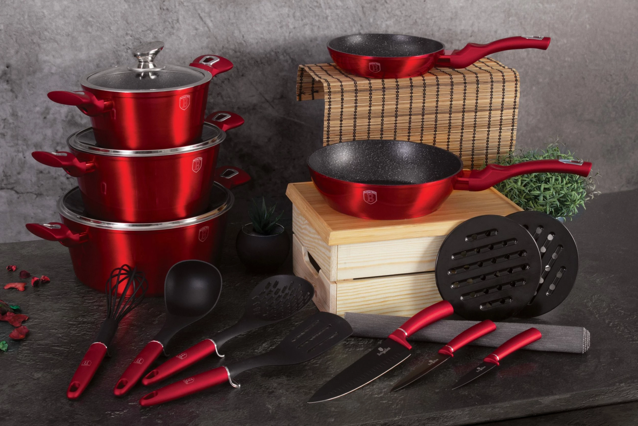 High-end aluminum cookware crafted to support amazing meals and unforgettable times spent with family and friends. Founded for those who love spending time crafting healthy meals for their kids and high-end courses for friends the Berlinger Haus Aluminum Cookware Set offers the ideal balance of style, versatility, and durable craftsmanship. From our non-stick, triple-coated surfaces to our heat-resistant, soft touch handles, we’ve thought of everything you’ll need to open up your cookbook and try out new recipes. Make cooking fun, enhance the look of your kitchen, and make every meal at home memorable once again.
