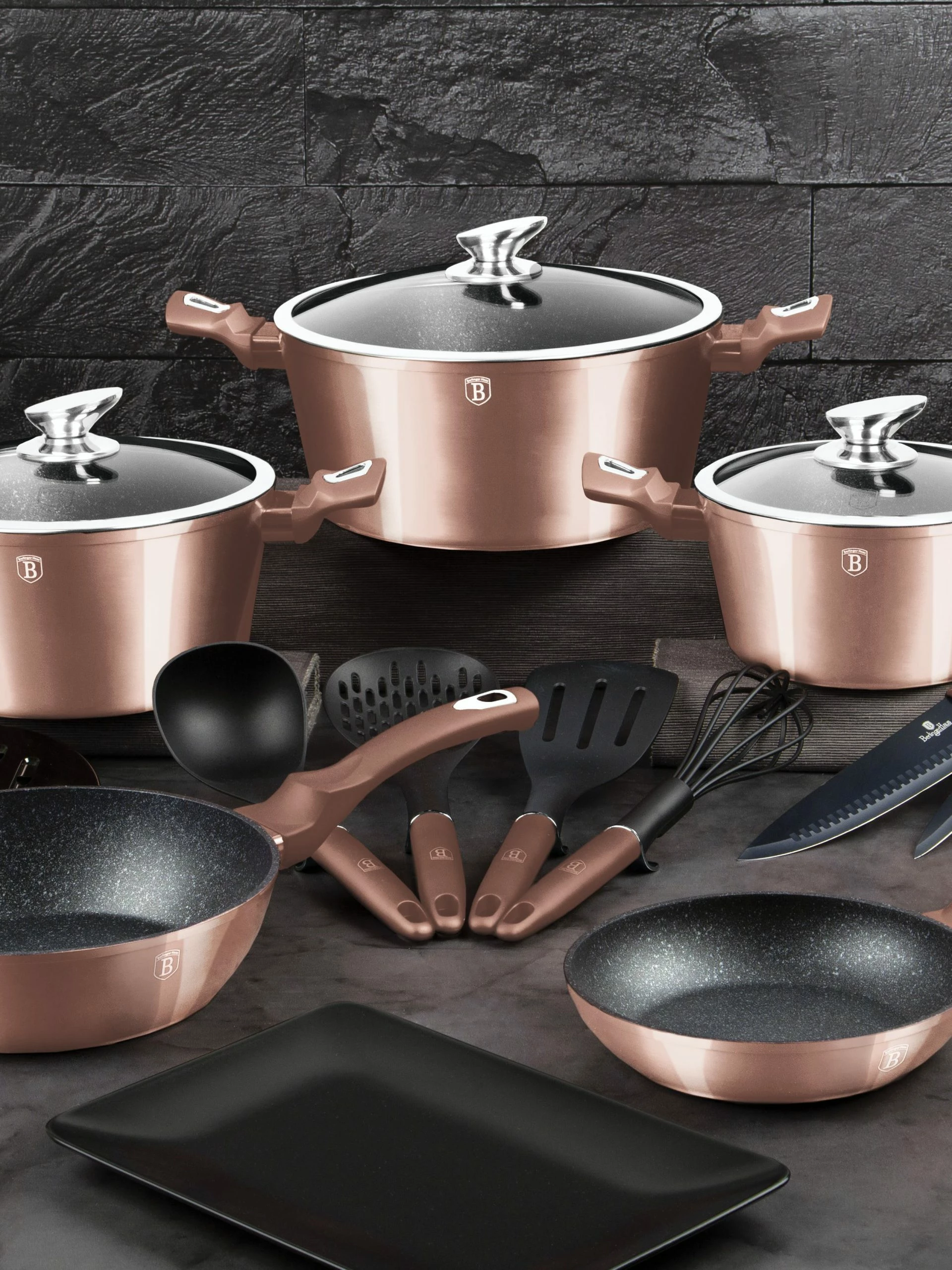 High-end aluminum cookware crafted to support amazing meals and unforgettable times spent with family and friends. Founded for those who love spending time crafting healthy meals for their kids and high-end courses for friends the Berlinger Haus Aluminum Cookware Set offers the ideal balance of style, versatility, and durable craftsmanship. From our non-stick, triple-coated surfaces to our heat-resistant, soft touch handles, we’ve thought of everything you’ll need to open up your cookbook and try out new recipes. Make cooking fun, enhance the look of your kitchen, and make every meal at home memorable once again.
