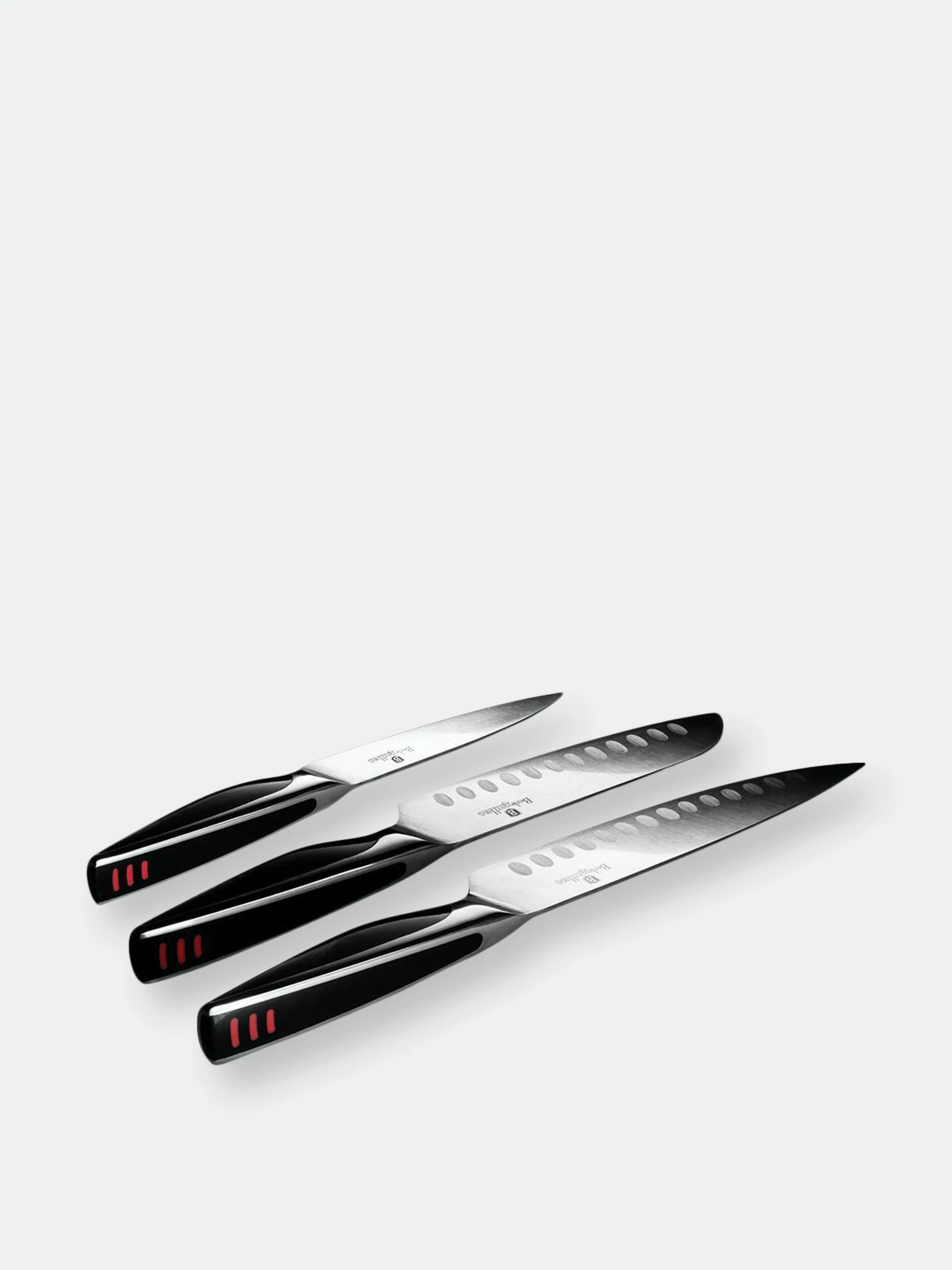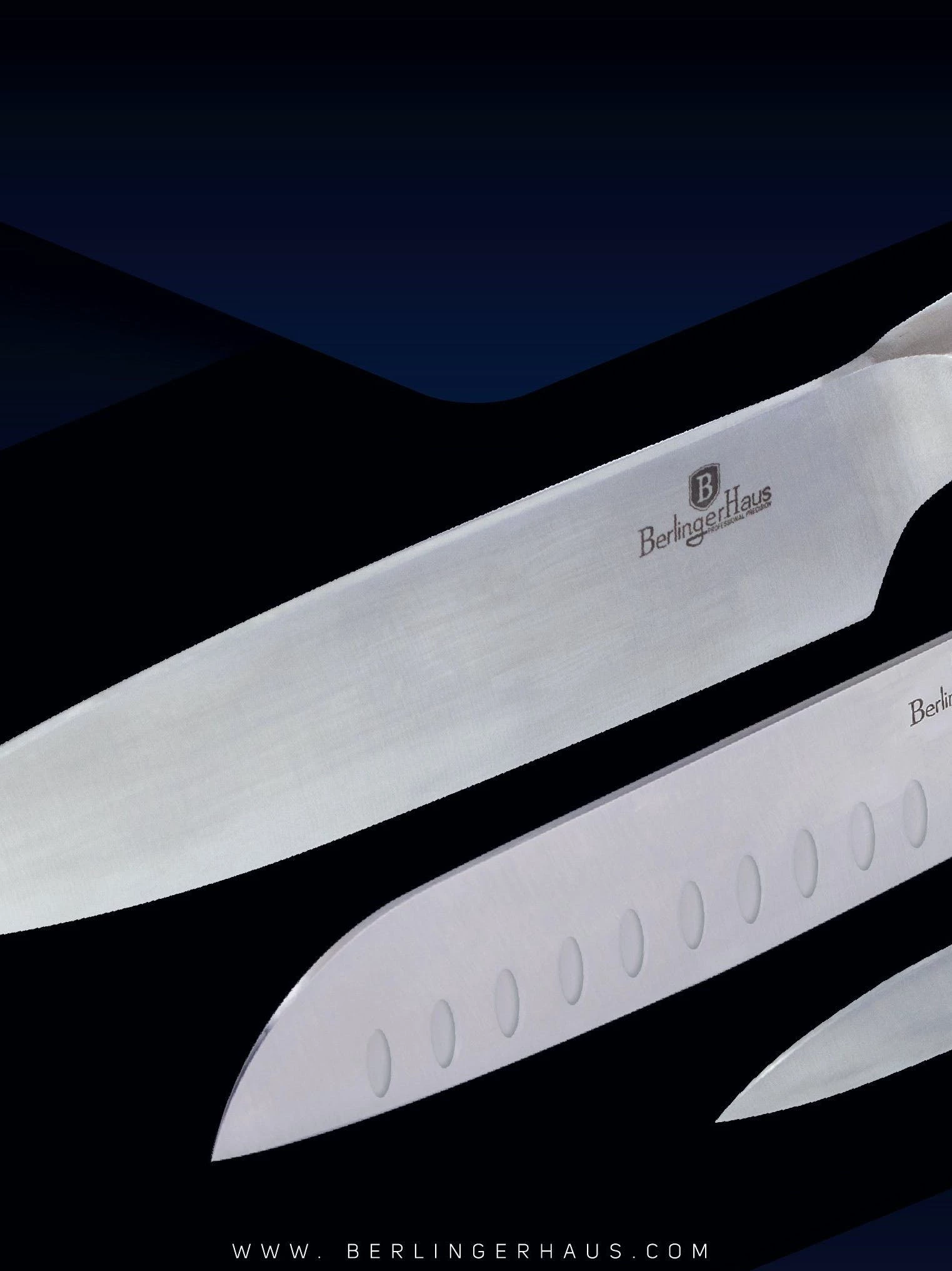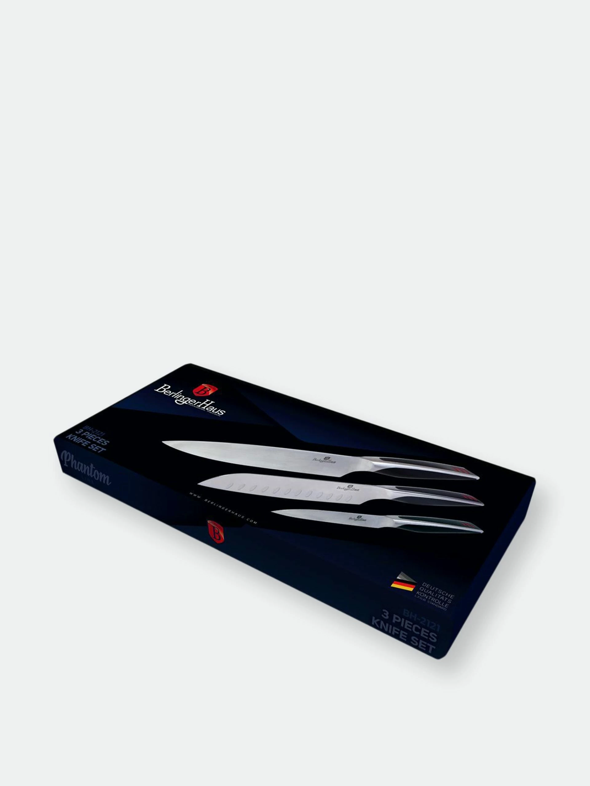 Superior blade sharpness and ergonomic comfort make Berlinger Haus stainless steel knife sets the perfect choice for every modern kitchen.There are few utensils more important in the kitchen than a good set of knives. They’re the most versatile and reliable tool when it comes to preparing meat, vegetables, bread, cheese, and just about everything else in your cookbook. That’s why you need knives that are more than just sharp, they’re designed to be easier and more reliable to use. We created these Berlinger Haus Kitchen Knife Sets with chef-grade precision but with an ergonomic design that’s safer and more comfortable in your hand.Includes:Chef knife 8″Santoku knife 7″Utility knife 5″