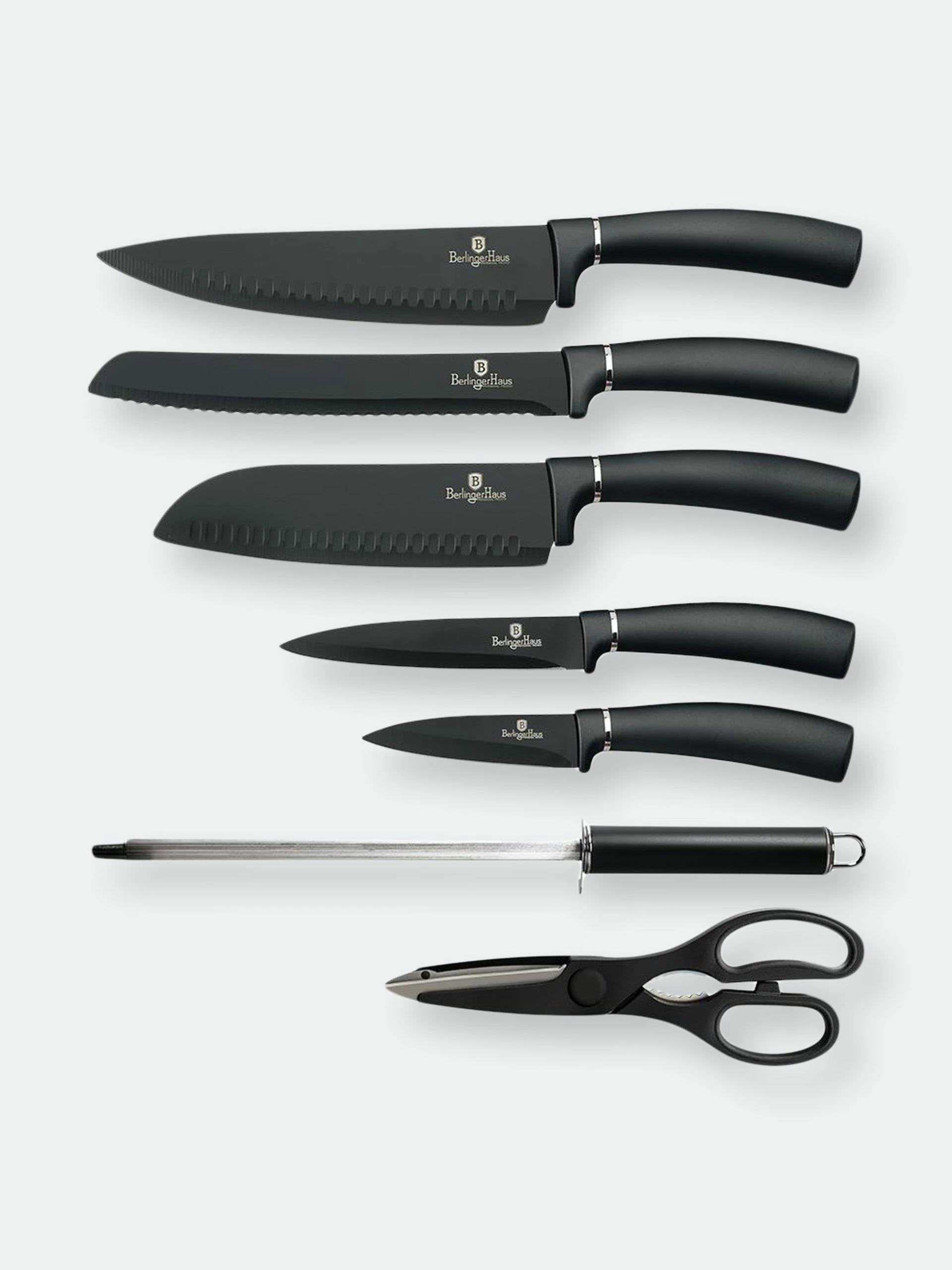 Superior blade sharpness and ergonomic comfort make Berlinger Haus stainless steel knife sets the perfect choice for every modern kitchen.There are few utensils more important in the kitchen than a good set of knives. They’re the most versatile and reliable tool when it comes to preparing meat, vegetables, bread, cheese, and just about everything else in your cookbook. That’s why you need knives that are more than just sharp, they’re designed to be easier and more reliable to use. We created these Berlinger Haus Kitchen Knife Sets with chef-grade precision but with an ergonomic design that’s safer and more comfortable in your hand.