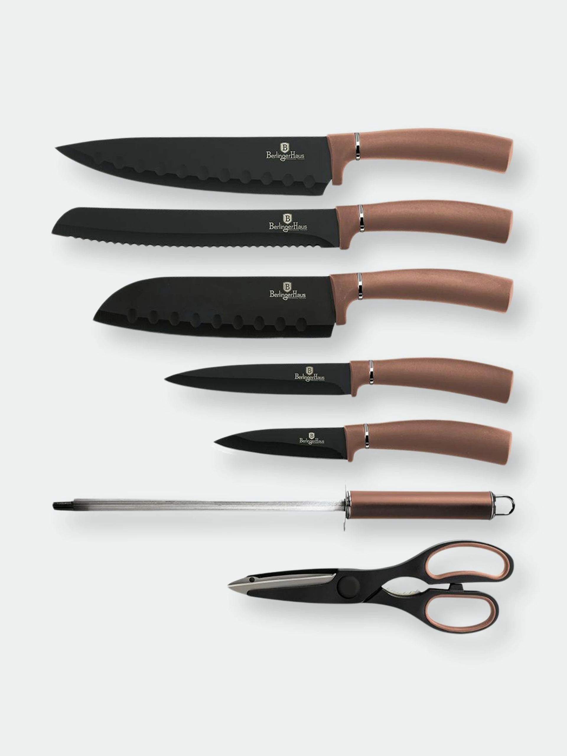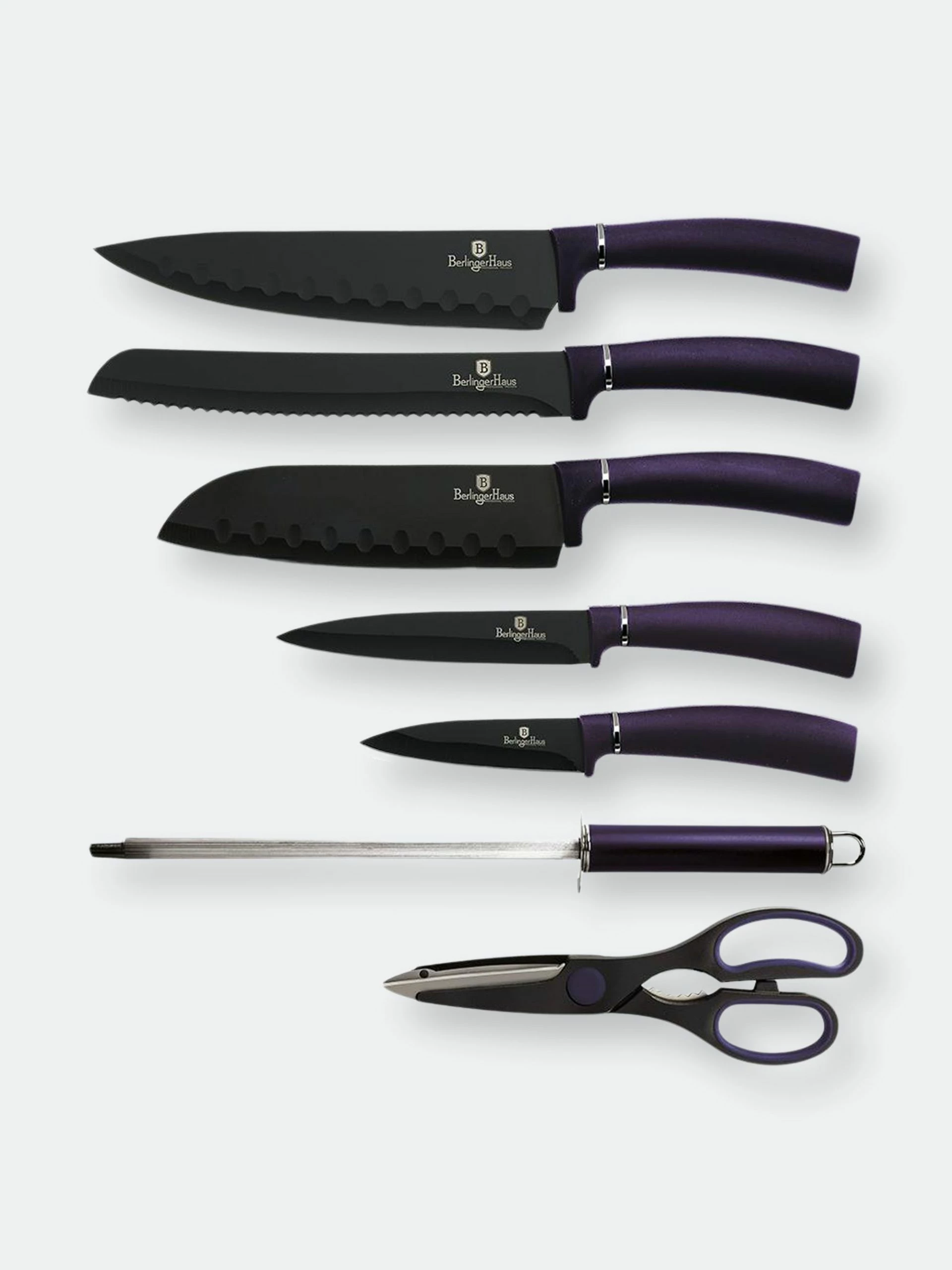 Superior blade sharpness and ergonomic comfort make Berlinger Haus stainless steel knife sets the perfect choice for every modern kitchen. There are few utensils more important in the kitchen than a good set of knives. They’re the most versatile and reliable tool when it comes to preparing meat, vegetables, bread, cheese, and just about everything else in your cookbook. That’s why you need knives that are more than just sharp, they’re designed to be easier and more reliable to use. Created these Berlinger Haus Kitchen Knife Sets with chef-grade precision but with an ergonomic design that’s safer and more comfortable in your hand.