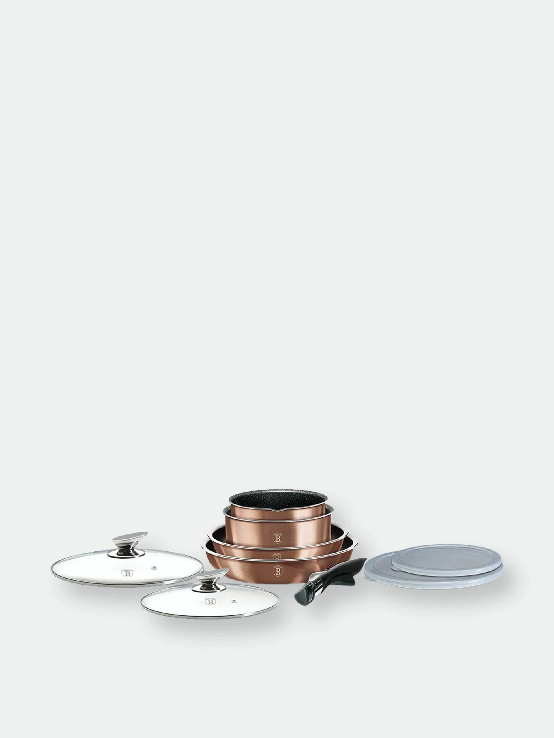 High-end aluminum cookware crafted to support amazing meals and unforgettable times spent with family and friends.Founded for those who love spending time crafting healthy meals for their kids and high-end courses for friends the Berlinger Haus Aluminum Cookware Set offers the ideal balance of style, versatility, and durable craftsmanship. From our non-stick, triple-coated surfaces to our heat-resistant, soft touch handles, we’ve thought of everything you’ll need to open up your cookbook and try out new recipes. Make cooking fun, enhance the look of your kitchen, and make every meal at home memorable once again.