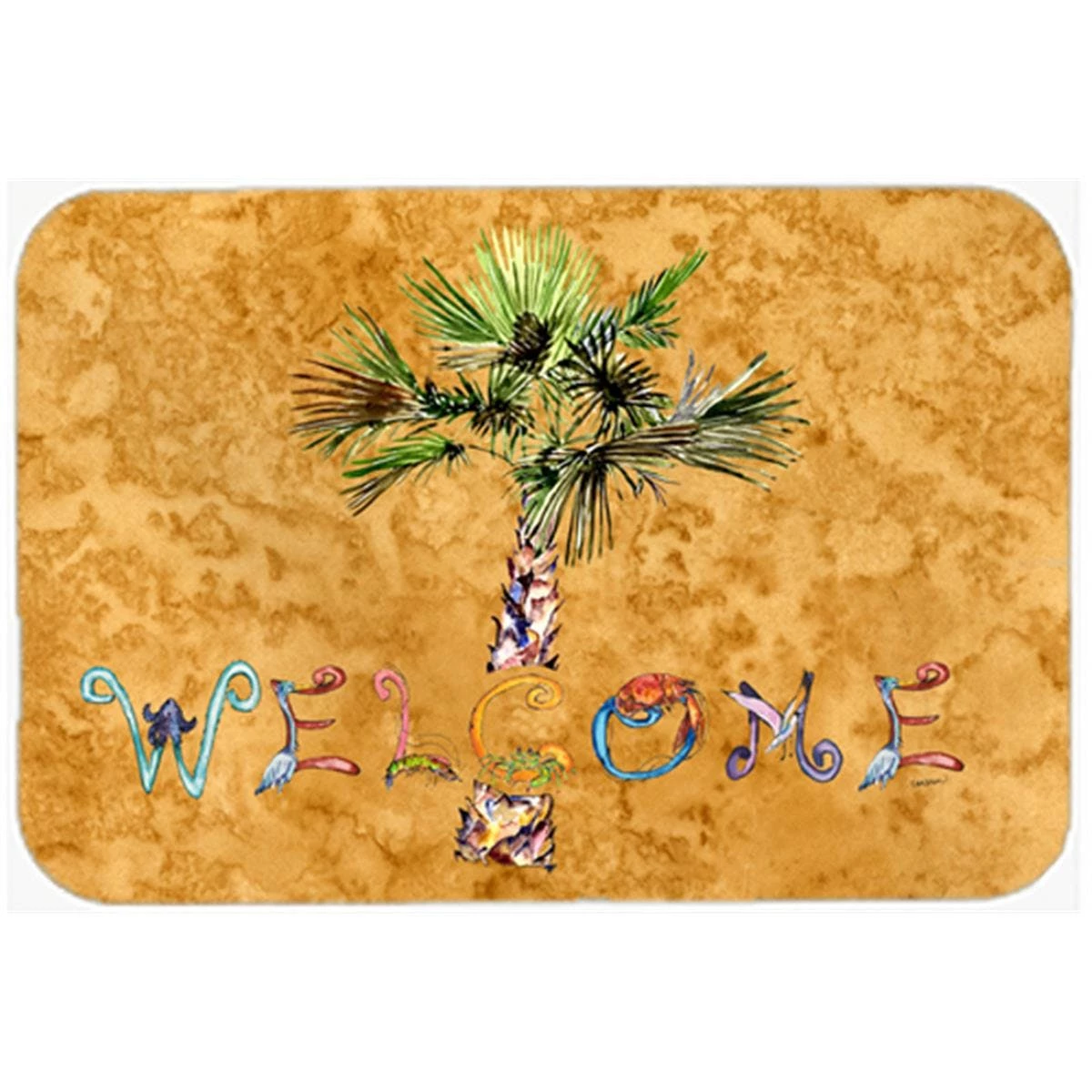 – Large Tempered Glass Cutting Board is heat resistant and hand wash only.- This chopping board is bright and colorful.- Made of tempered glass.- These unique cutting boards feature artwork from some of your favorite artists prints.- Beautify and protect your counter top.- Heat resistant, non skid feet, and virtually unbreakable.- Design – Welcome Palm Tree on Gold Glass