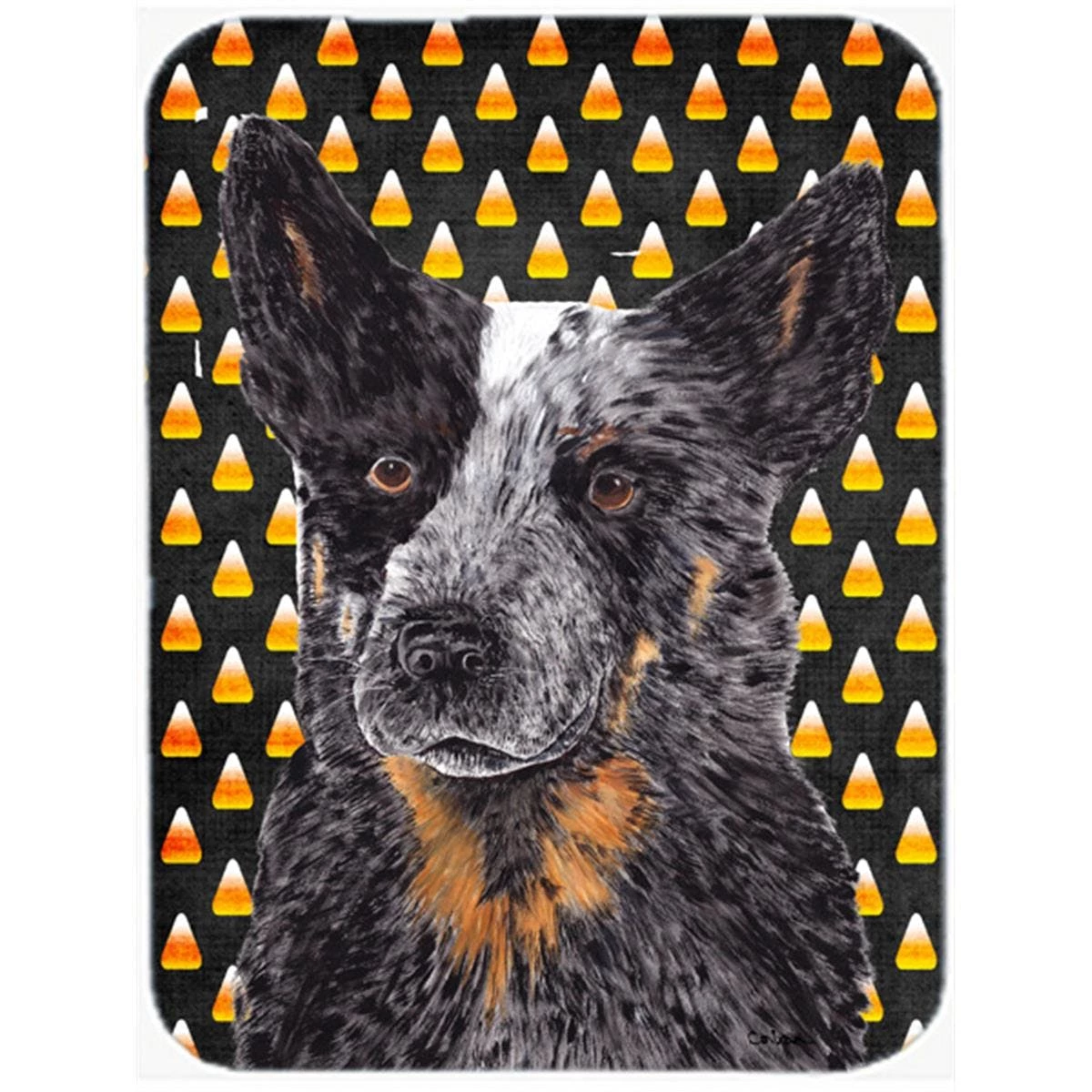– Made of tempered glass, these unique cutting boards are some of your favorite artists prints.- It will beautify and protect your counter top.- Heat resistant, non skid feet, and virtually unbreakable.- Design – australian cattle dog candy corn halloween portrait.