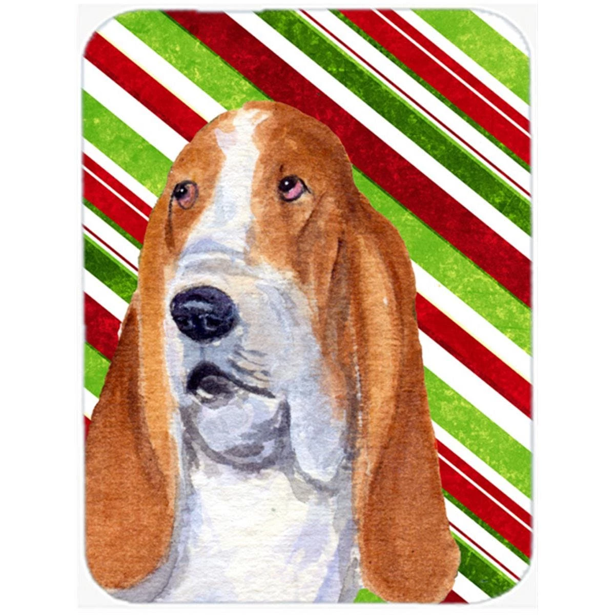 Basset Hound Candy Cane Holiday Christmas Glass Cutting Board Large Cutting Board featuring breed specific Basset Hound artwork from Caroline’s Treasures artists. Celebrate christmas with this cutting board from caroline’s treasures.